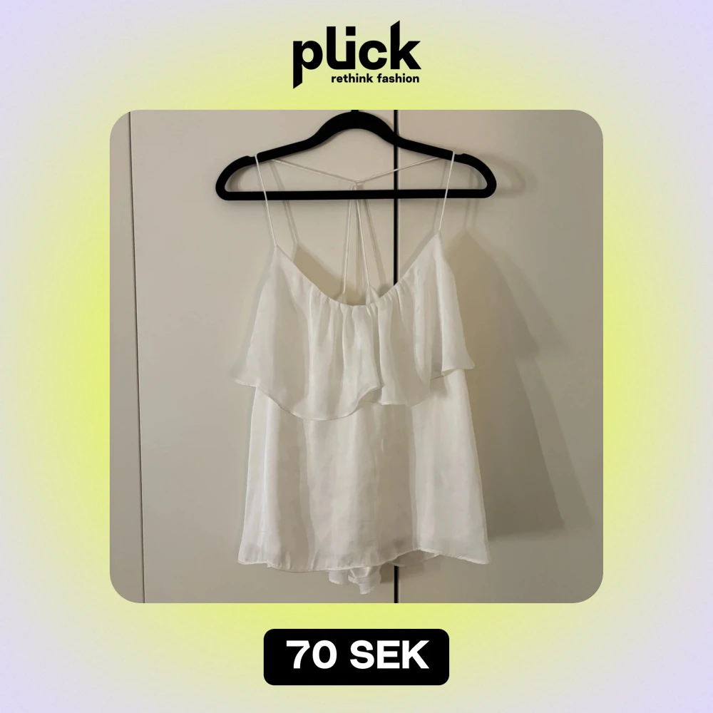 Ett superfint linne från Gina tricot i storlek 36 (lite liten i storleken). Superfint glansigt material och luftigt. Mycket bra skick då den bara använts några gånger. Finns dock en pytteliten fläck på axelbandet, men inget som syns när man har den på.