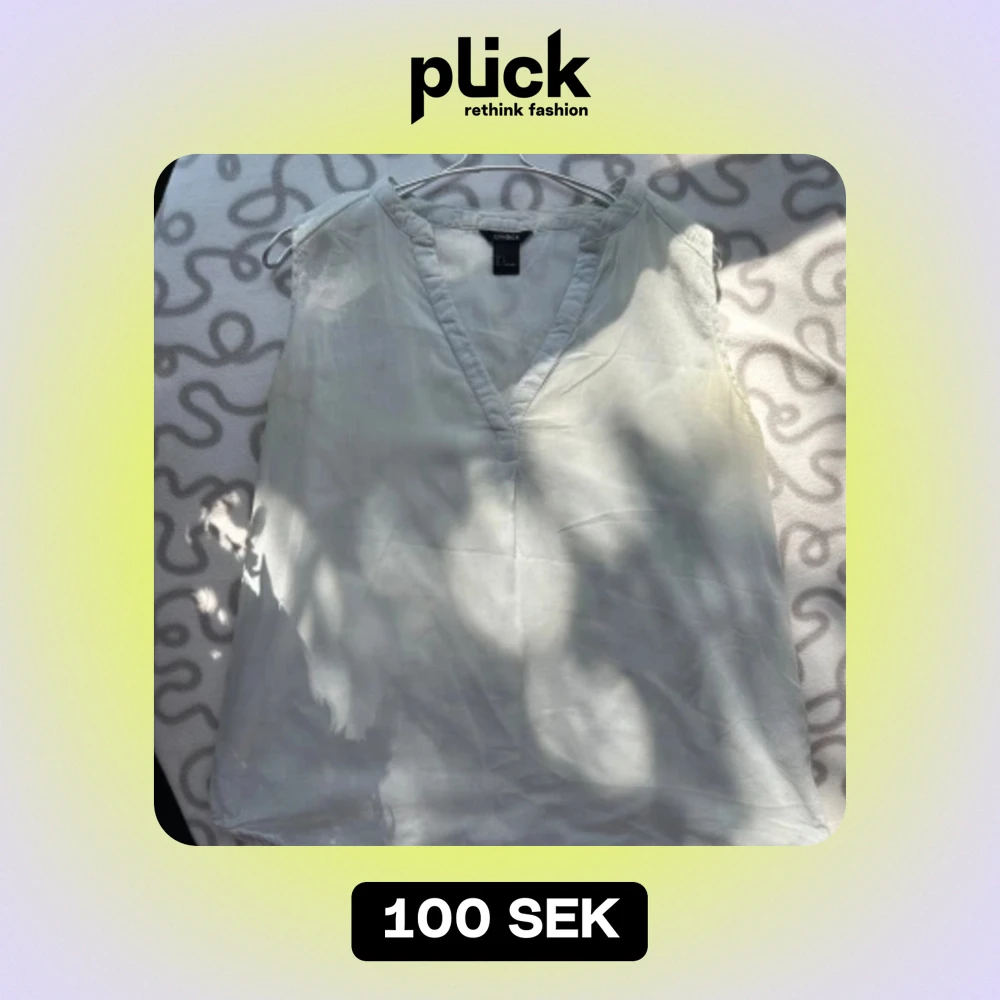 Säljer en stilren vit ärmlös topp från Lindex. Perfekt för sommardagar eller som ett basplagg i garderoben. Toppen har en v-ringad design och är gjord i ett lätt och bekvämt material.