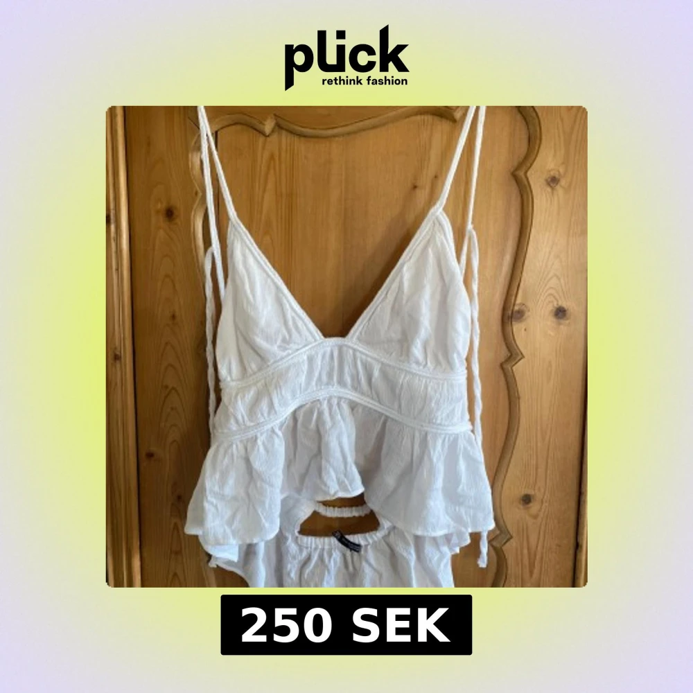 Säljer en vit ärmlös topp från Zara med smala axelband och volangdetaljer. Toppen har en luftig och somrig design med en v-ringad framdel. Perfekt för varma dagar!