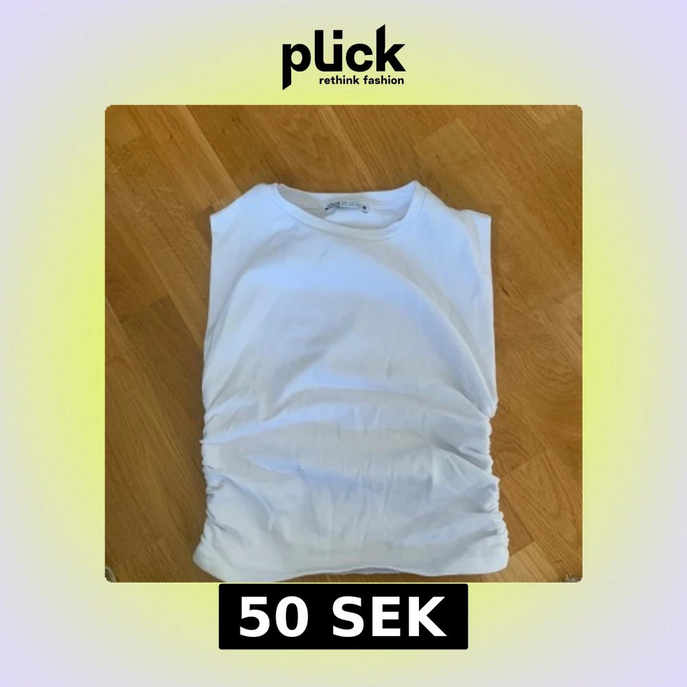 Säljer en stilren vit ärmlös topp från Zara. Toppen har en enkel design med rynkade detaljer på sidorna som ger en snygg touch. Köparen står för frakt