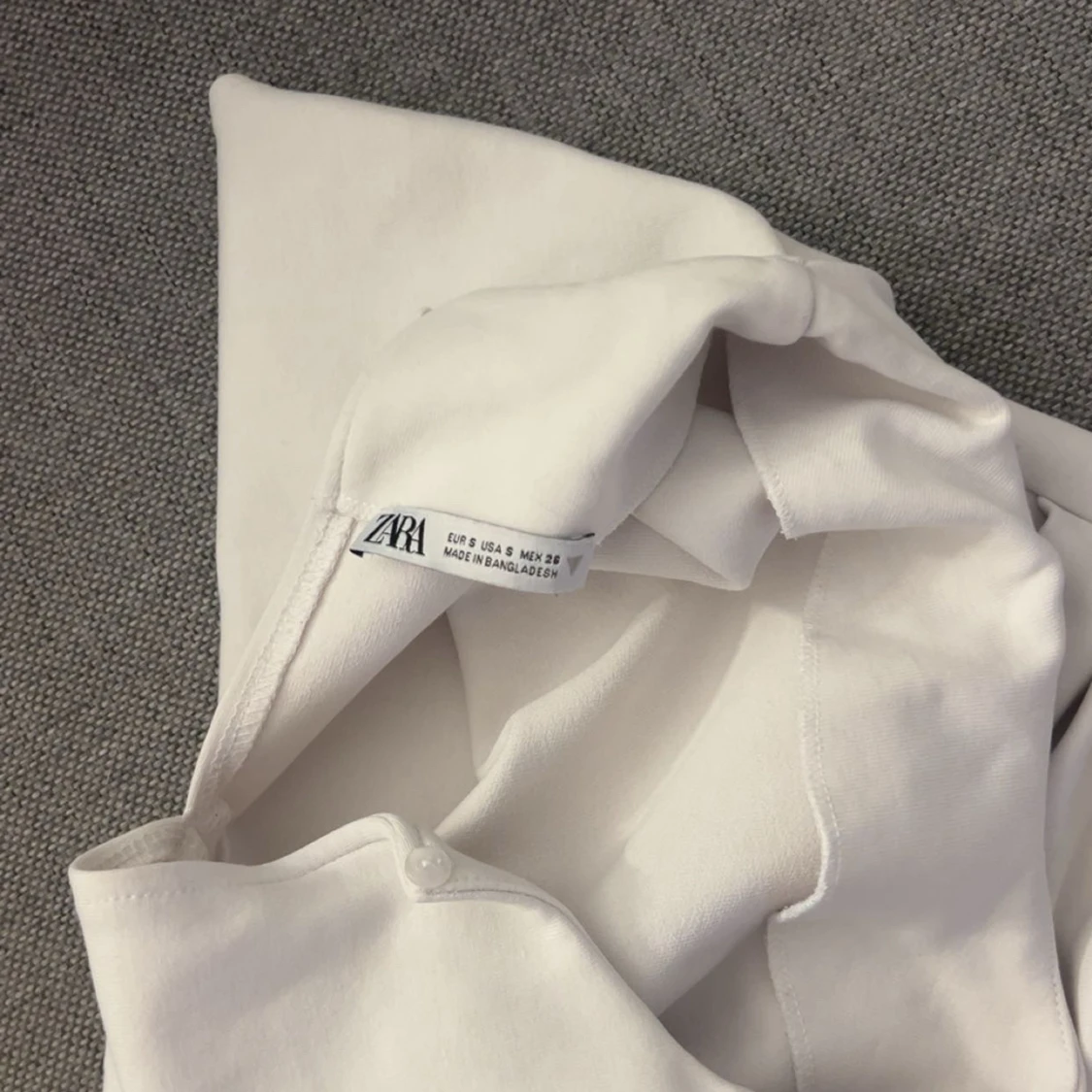 Säljer en stilren vit ärmlös topp från Zara. Toppen har rund halsringning och är i mjuk bomullskvalitet. Enkel och clean design som är lätt att matcha med olika outfits. Perfekt för dig som gillar minimalistisk stil.