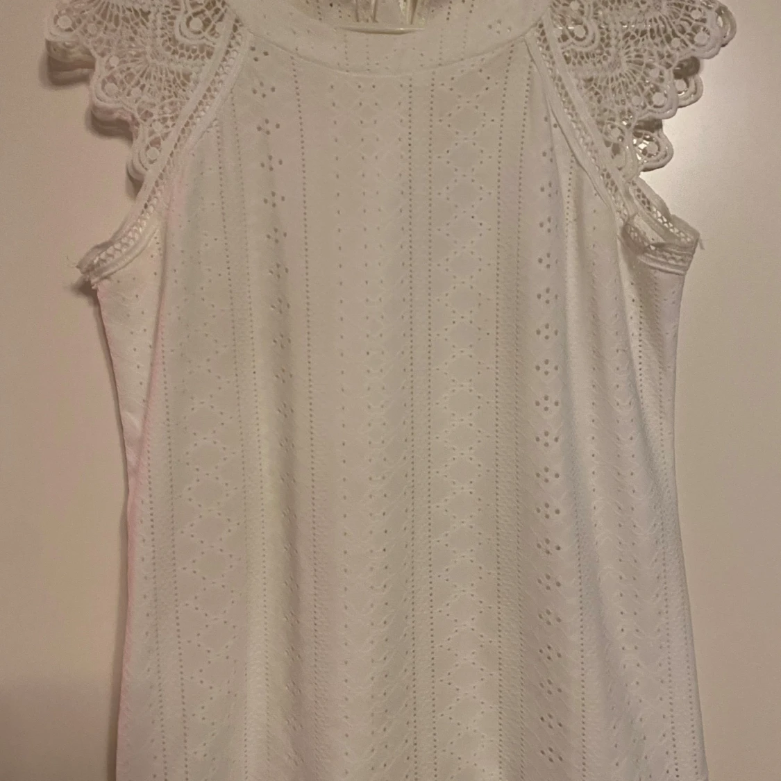 Vit ärmlös topp med spetsdetaljer