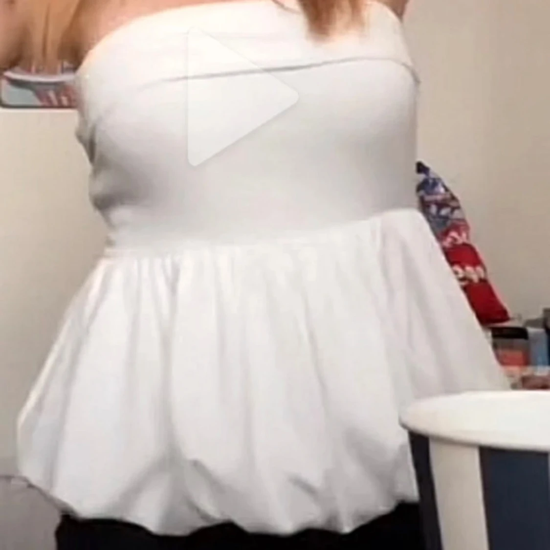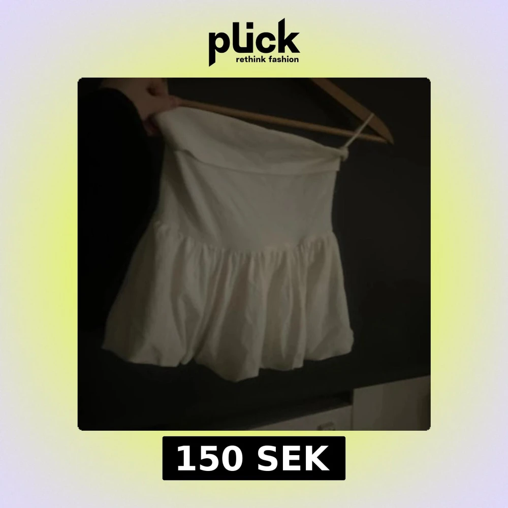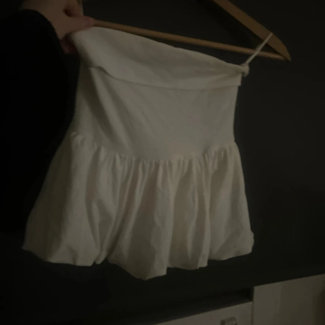 Säljer en söt vit axelbandslös topp med volang nertill. Perfekt för sommaren eller som en söt fest topp💓🤗
