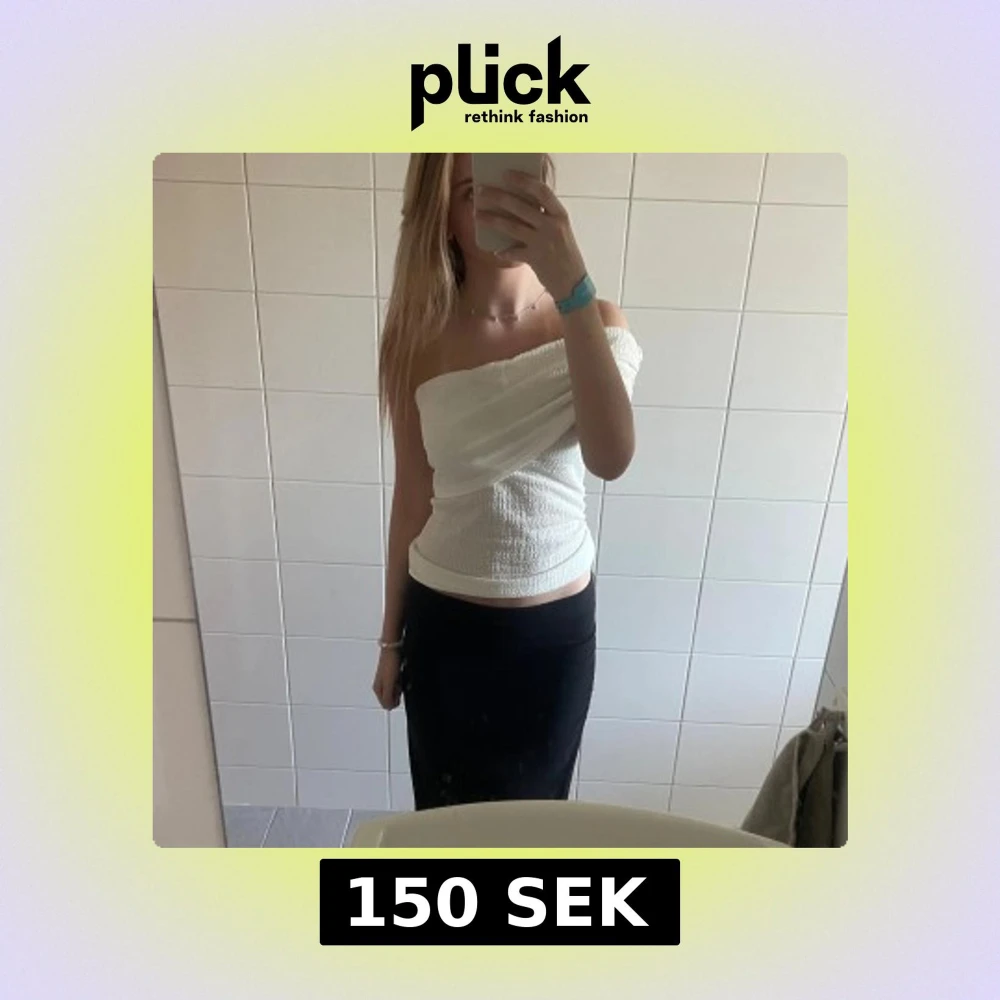 Säljer en vit bandeau tubtopp med omlott-detalj. Toppen är ärmlös och har en smockad struktur som ger en snygg passform. Perfekt för varma dagar och enkel att styla med olika underdelar.