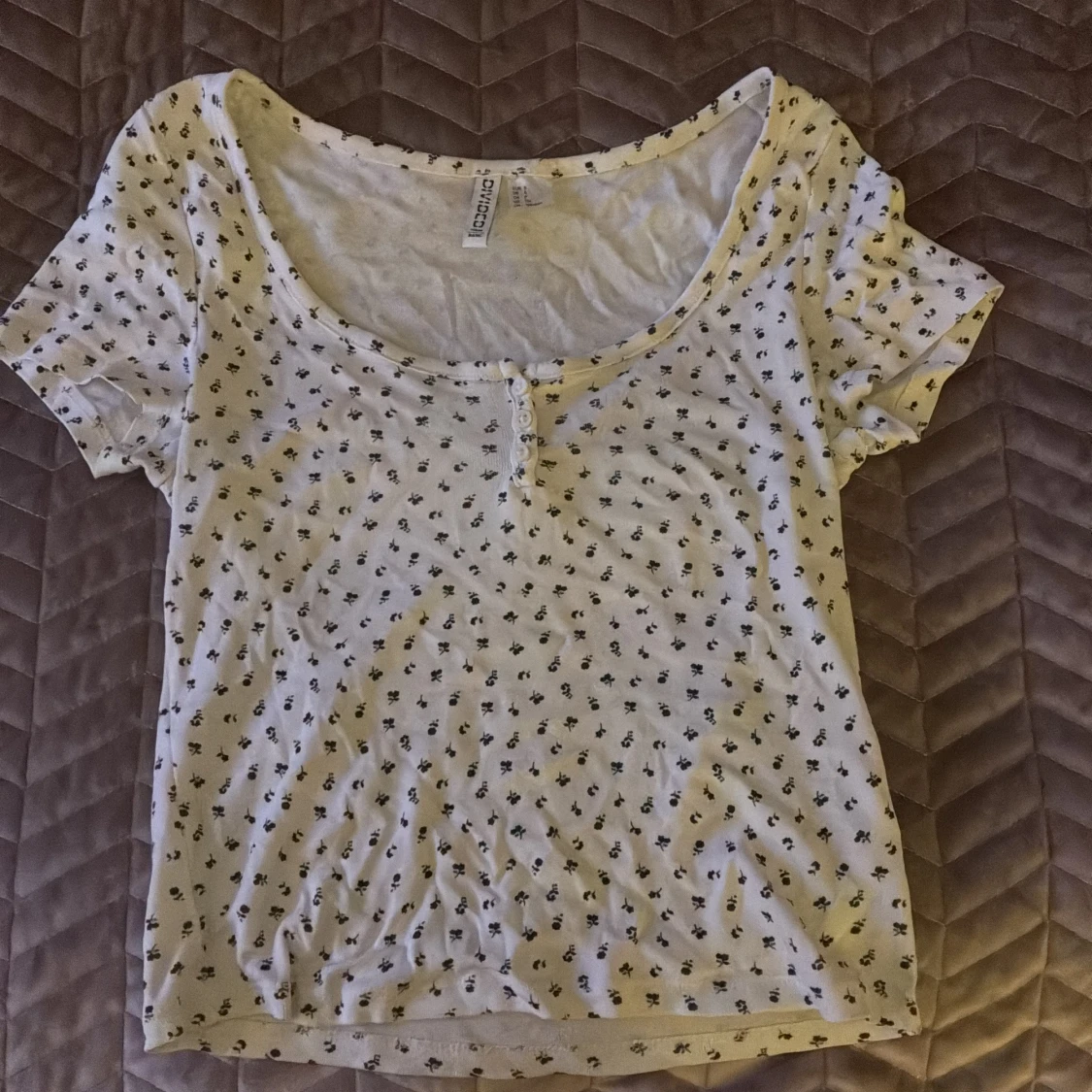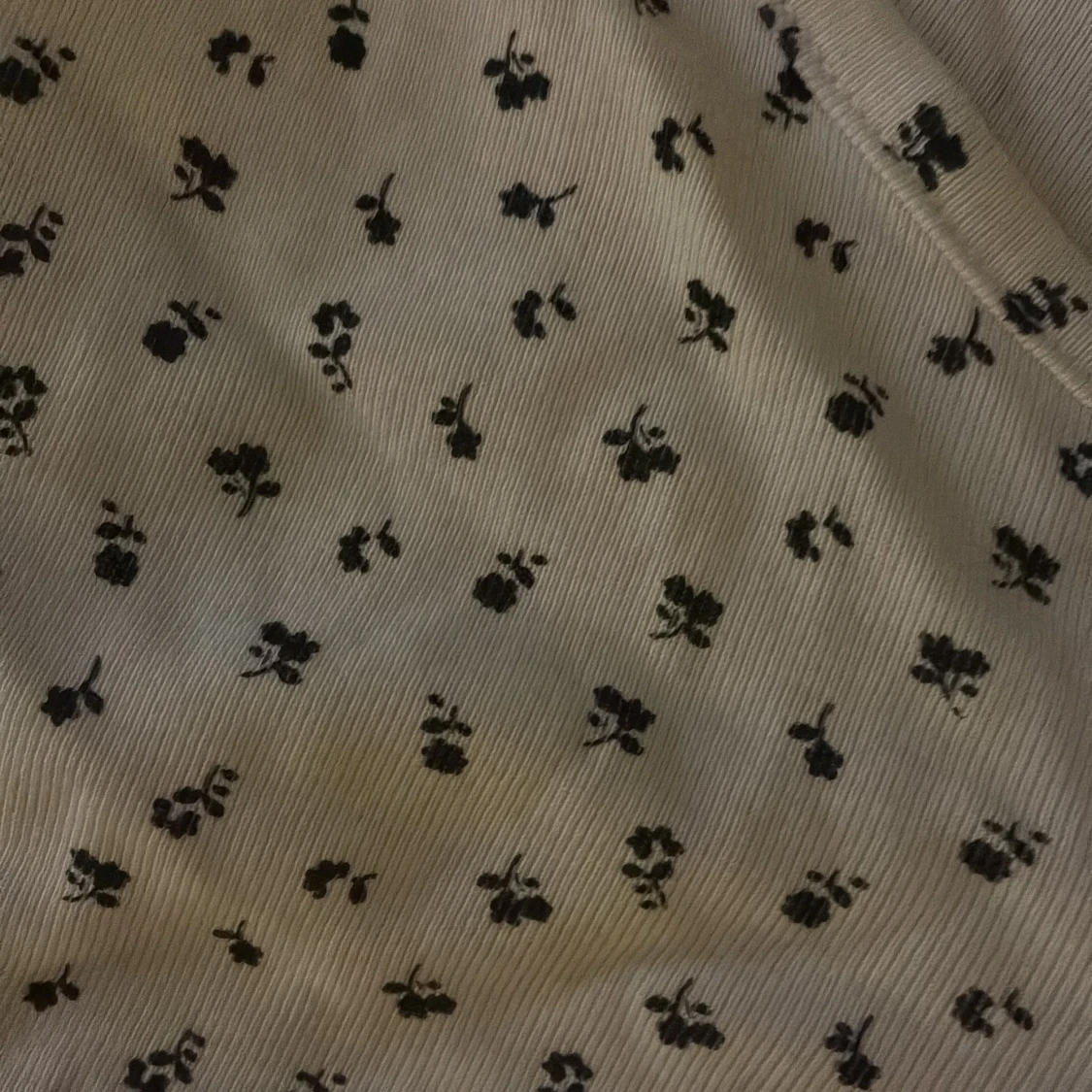 Supersöt vit topp från H&M Divided med små svarta blommor över hela. Rundad halsringning, korta ärmar och knappar framtill. Mjuk och skön bomullskvalitet, perfekt för vår och sommar. Enkel att matcha med jeans eller kjol för en chill look. Jag har bara använt den 2 gånger och gillar inte hur den sitter på mig så därför säljer jag den. Pris kan diskuteras.