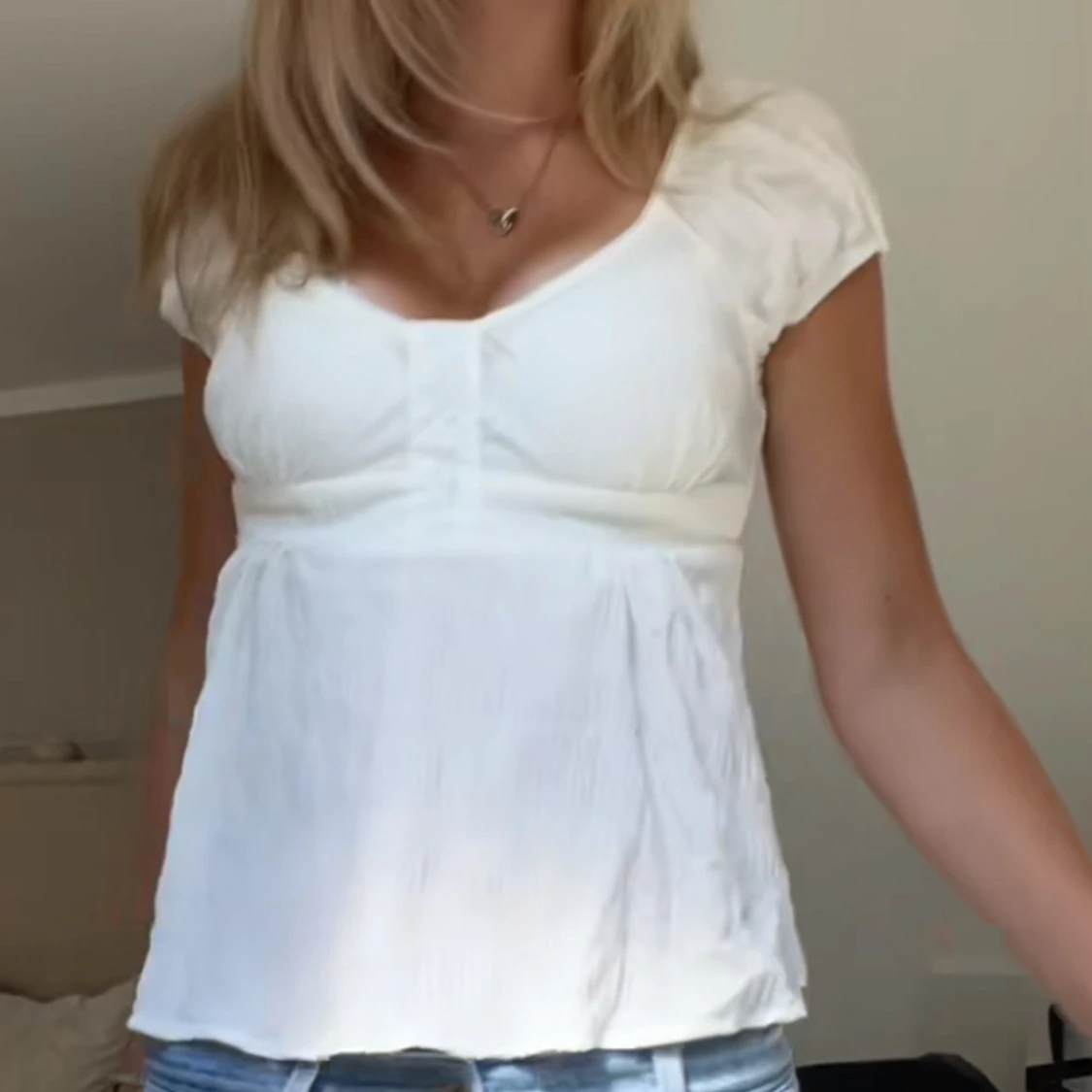 Söt vit blus köpte pĂ„ plick förra Ă„ret. Ingen lapp, liknar Brandy Melville. Hör av er för frĂ„gorâ€ïž