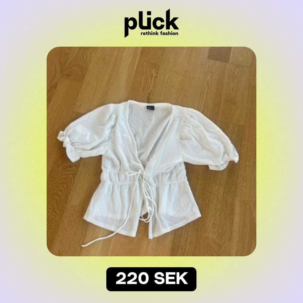 Säljer en superfin vit blus från gina med puffiga armar och en snygg knytning framtill❣️