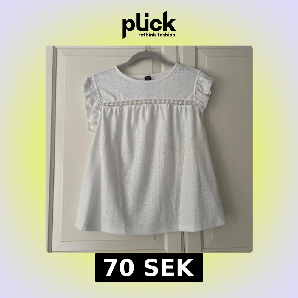 Superfin vit blus från SHEIN i storlek M. Blusen har broderade detaljer, volangärmar och en söt spetskant över bröstet. Jätte stretchiga och superfin till ett par jeans💕 Hör gärna av dig vid frågor💕💕