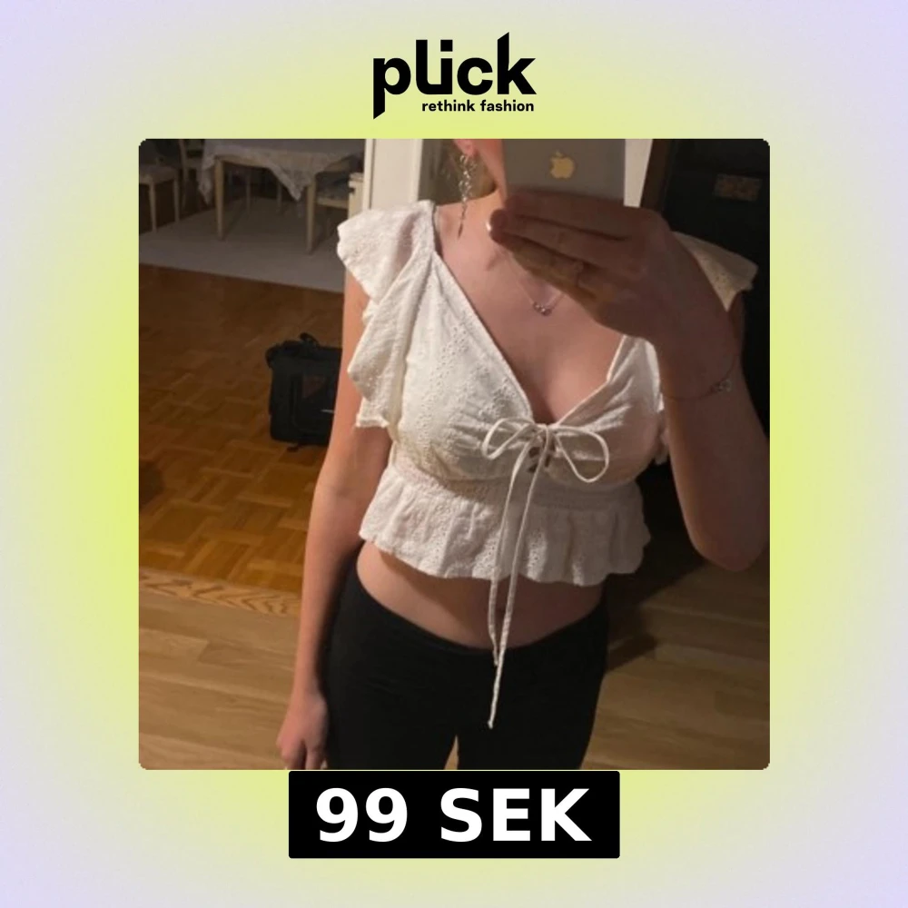 Säljer en söt vit blus från Wild Flower med spetsdetaljer och volanger. Blusen är kortärmad och har en knytning framtill som ger en fin passform. Perfekt för varma dagar!
