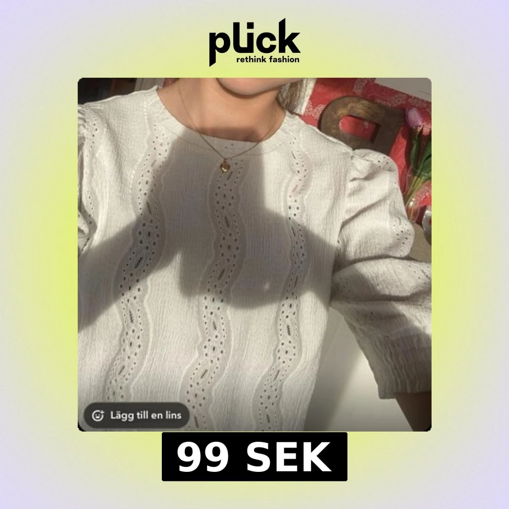 Supersöt vit blus från Pieces med korta puffärmar och vågformade broderade detaljer. Blusen har rund halsringning och är i ett lätt, luftigt tyg som känns perfekt för vår och sommar. Snygg struktur och romantisk känsla!