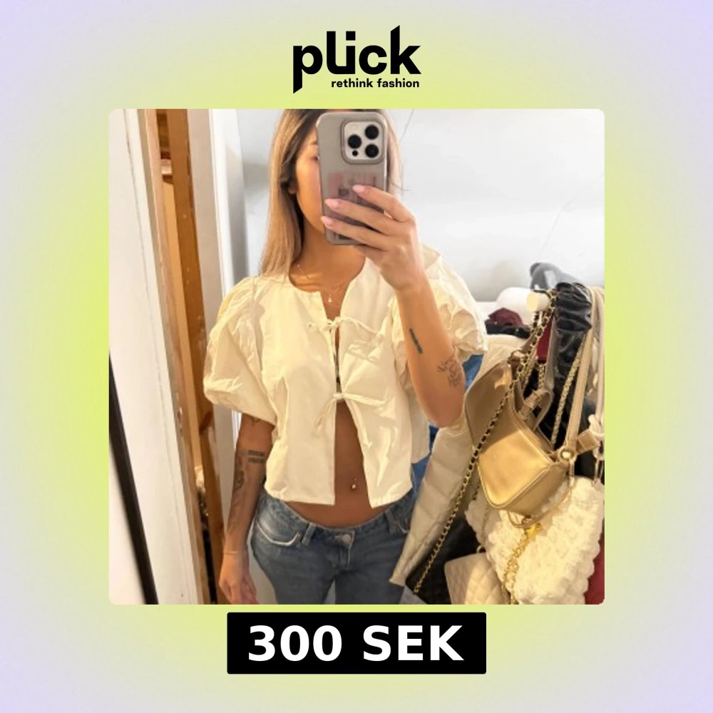 Säljer en superfin vit blus med korta puffärmar och två knyt framtill. Blusen är croppad och har en luftig passform som ger en cool och trendig vibe. Perfekt till jeans eller kjol för en snygg look.