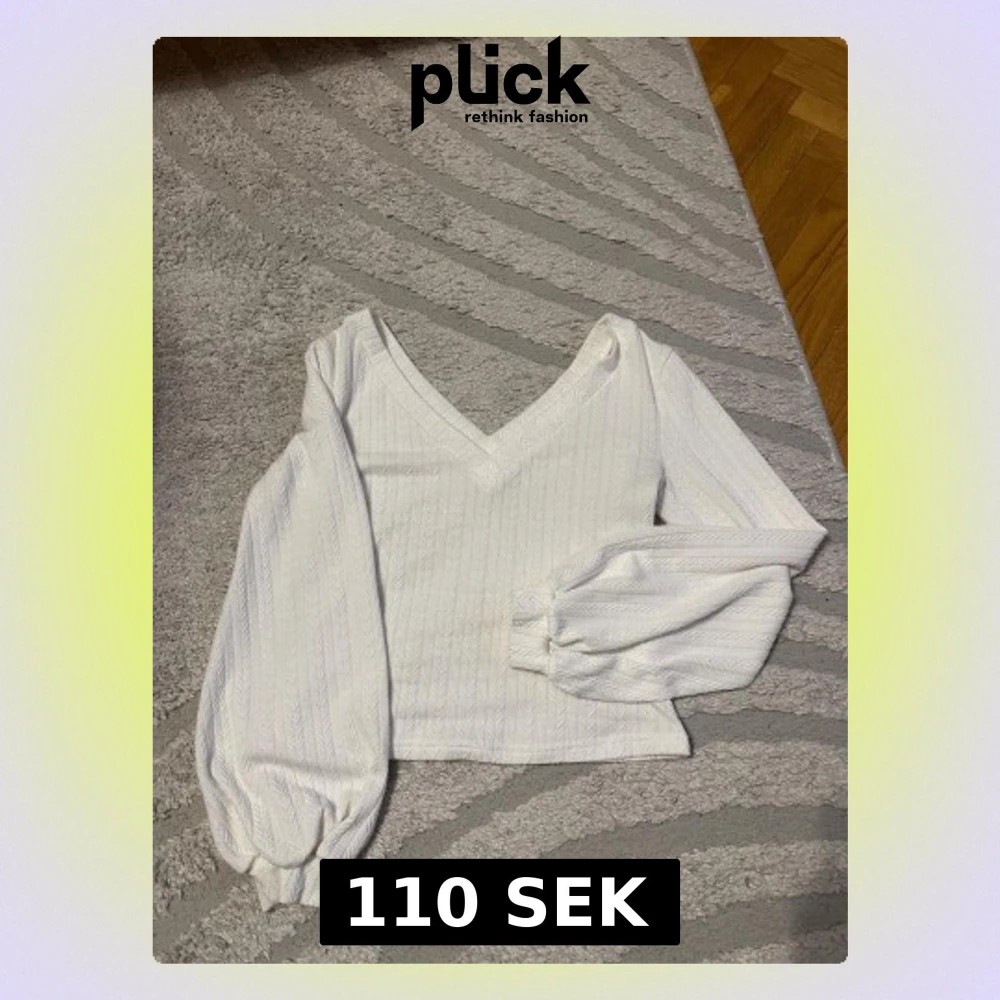 Säljer en vit blus med v-ringning och långa puffärmar. Blusen har ett subtilt mönster i tyget och breda muddar vid ärmsluten. Perfekt för dig som gillar en stilren och trendig look.