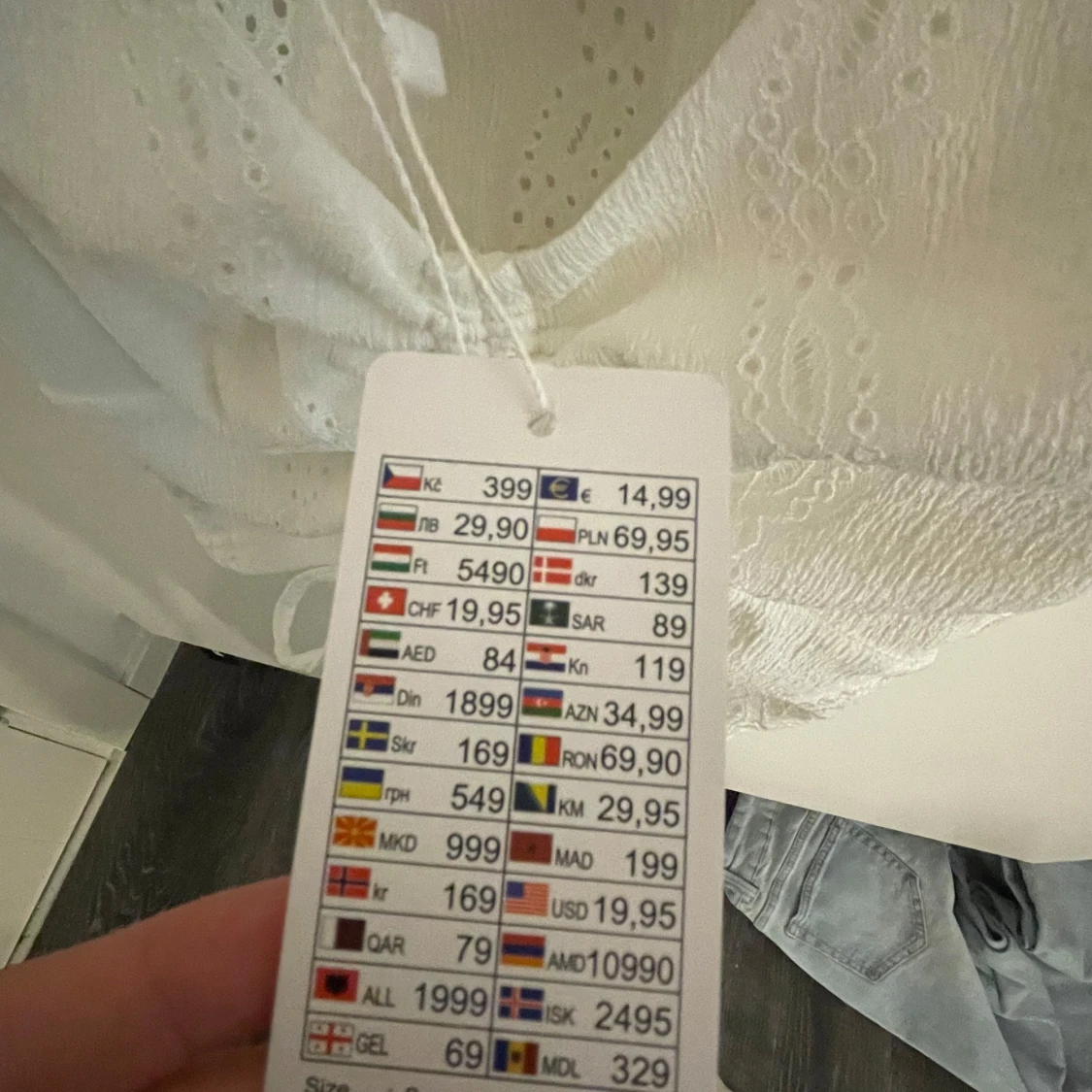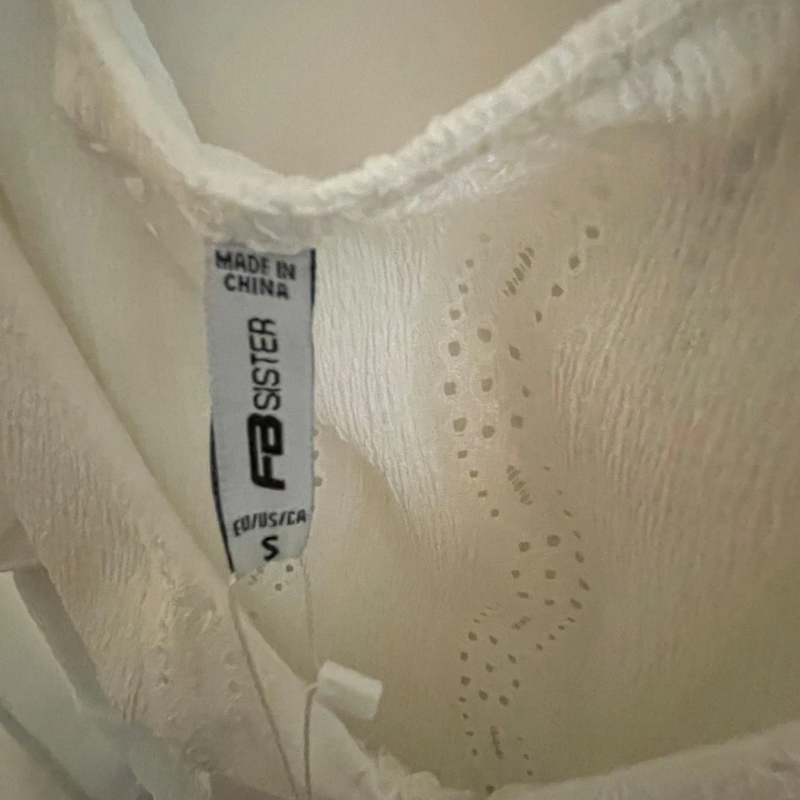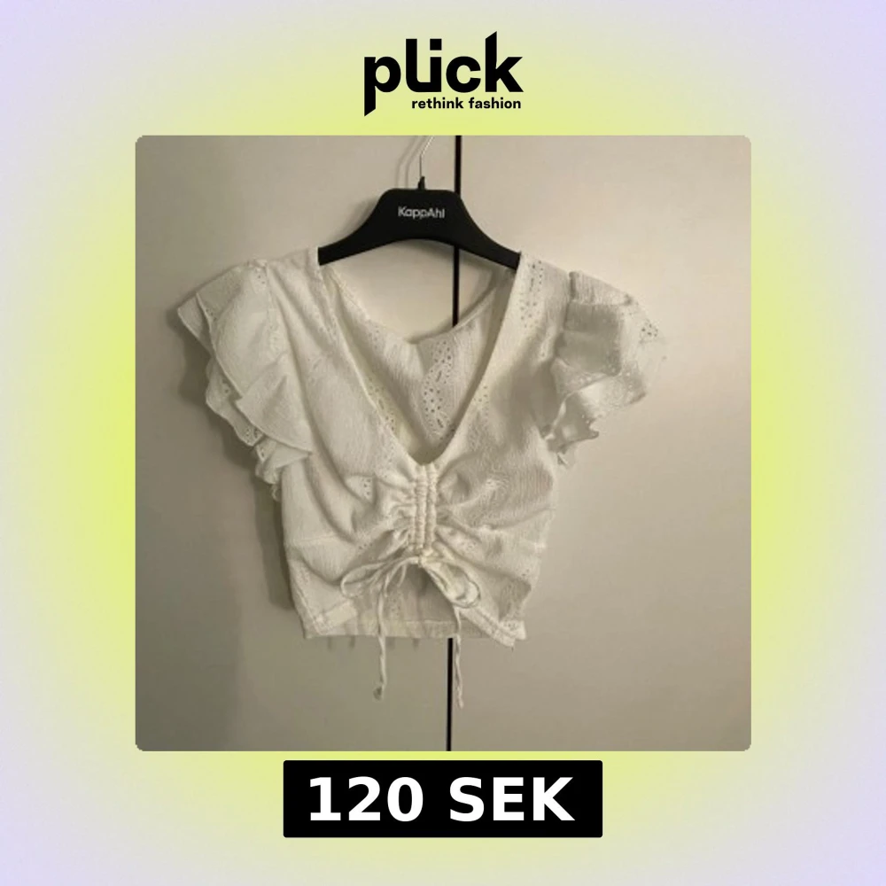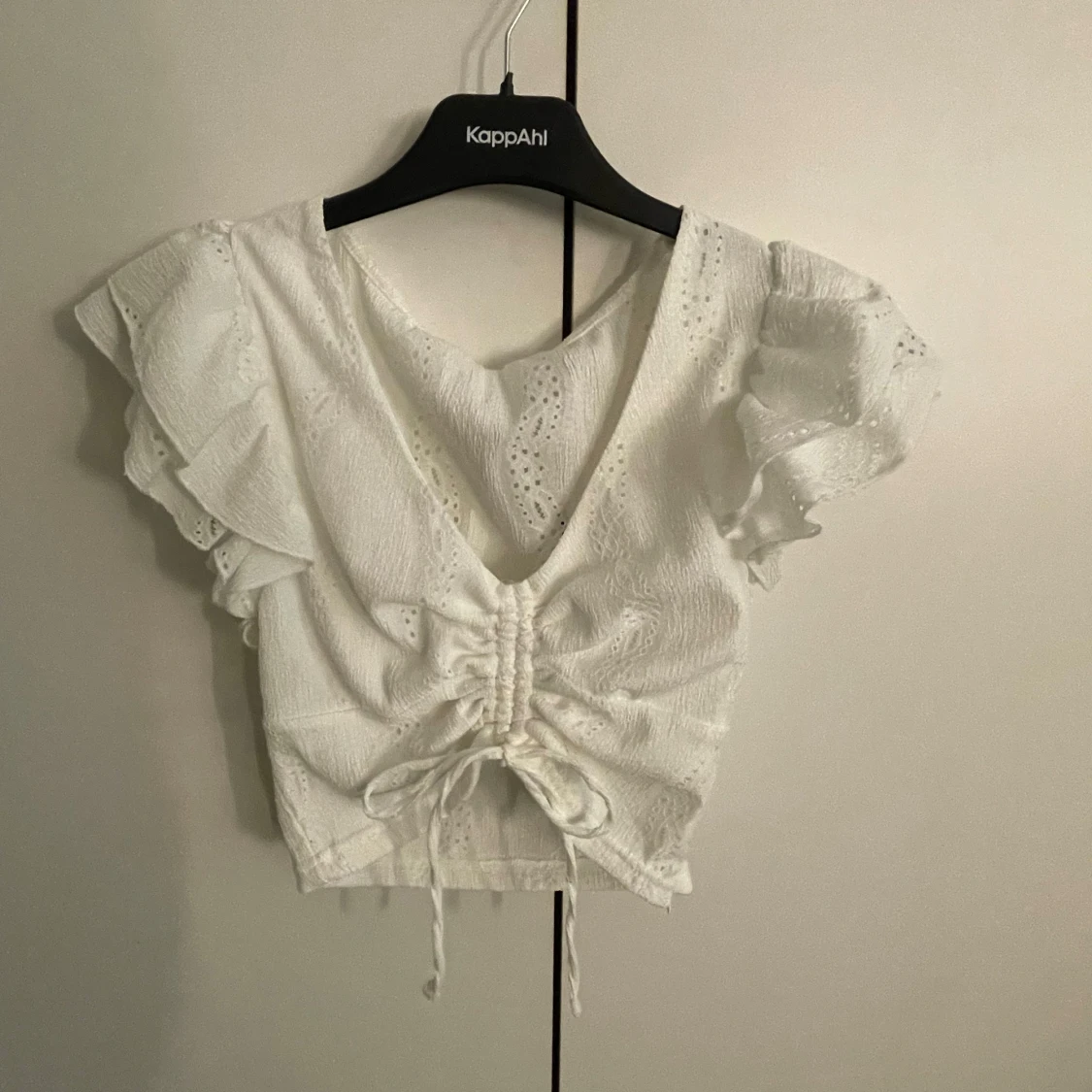 Superfin vit blus från FP Sister med v-ringning, volangärmar och snygg snörning framtill. Blusen har broderade detaljer och är croppad, perfekt till jeans eller kjol. Luftigt material som passar grymt till varma dagar.