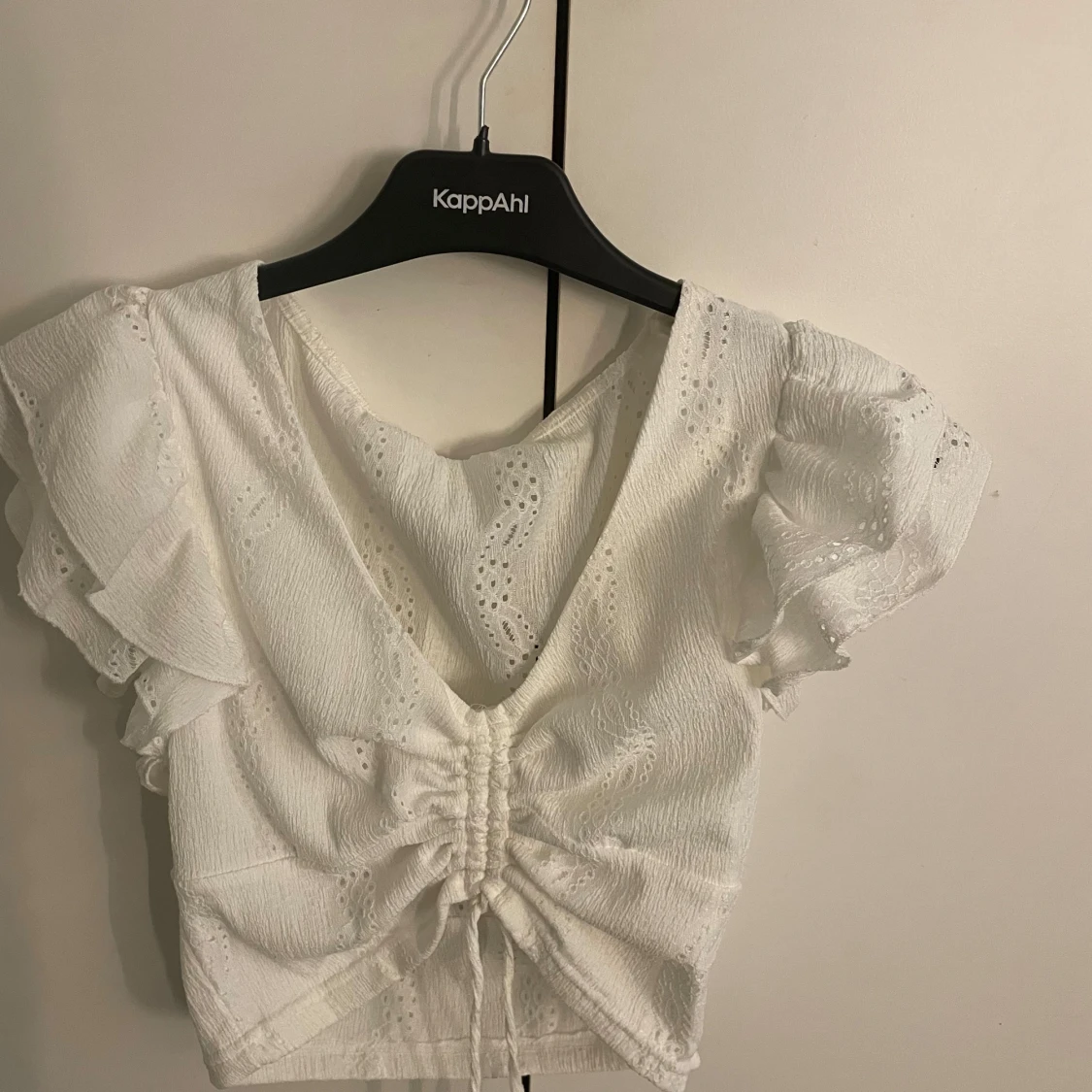 Superfin vit blus från FP Sister med v-ringning, volangärmar och snygg snörning framtill. Blusen har broderade detaljer och är croppad, perfekt till jeans eller kjol. Lätt och luftig, passar perfekt till sommaren.