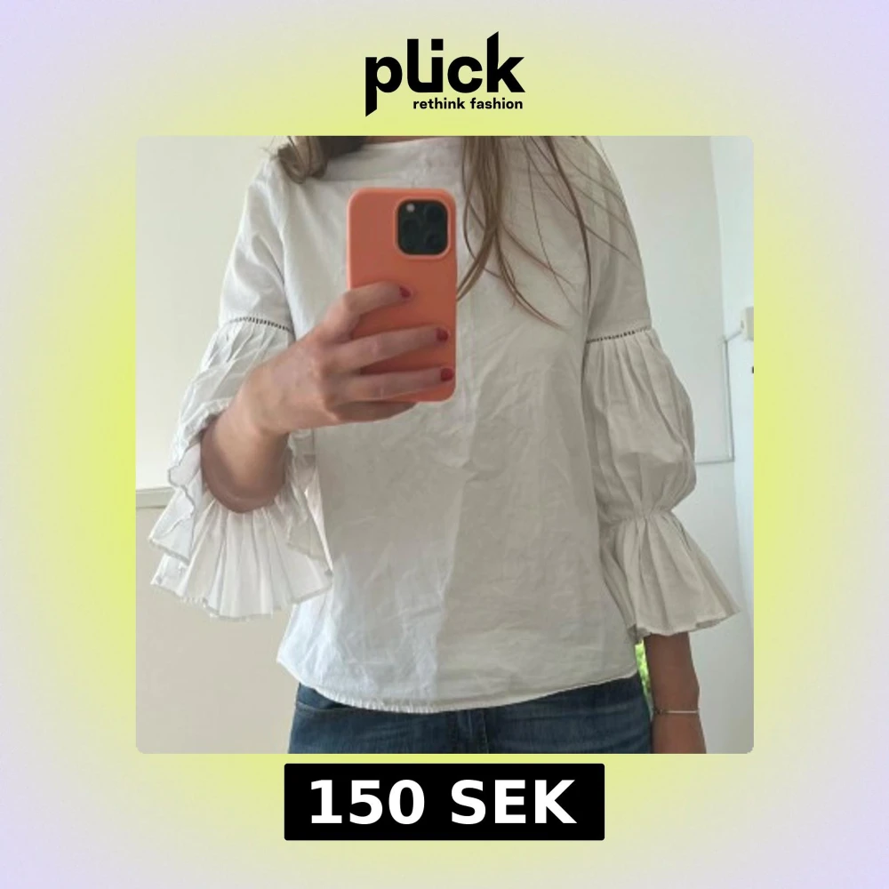 Supersnygg vit blus från Mango med vida, plisserade volangärmar.