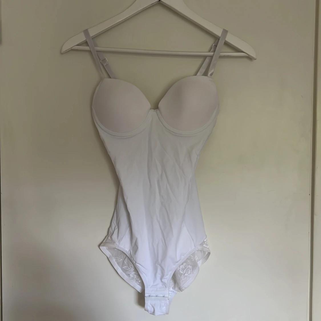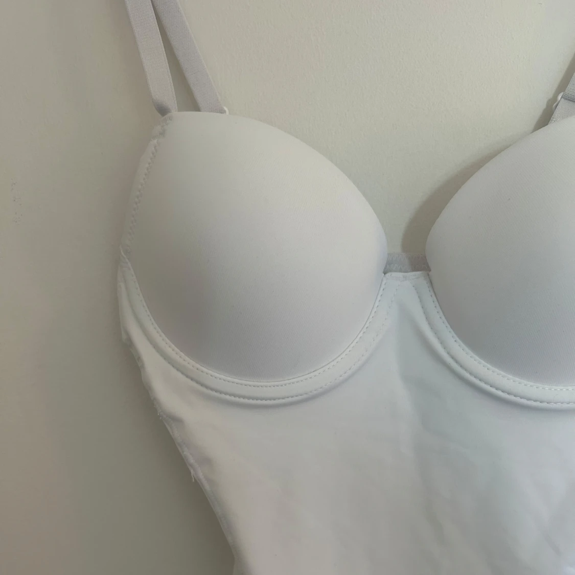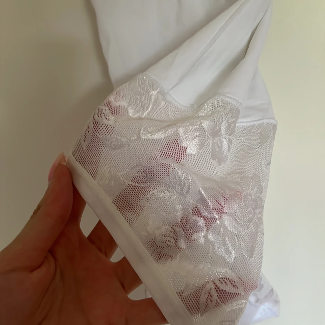 Vit body med spets baktill längst ned. Står xs i men skulle säga att den passar S mer. 💕