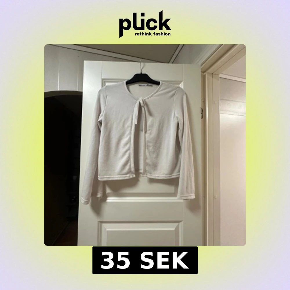Säljer en stilren vit bolerotopp från laget 157 med lång ärm och knyt framtill. Toppen har en rund halsringning och är croppad i modellen. Materialet känns mjukt och lätt mot huden.