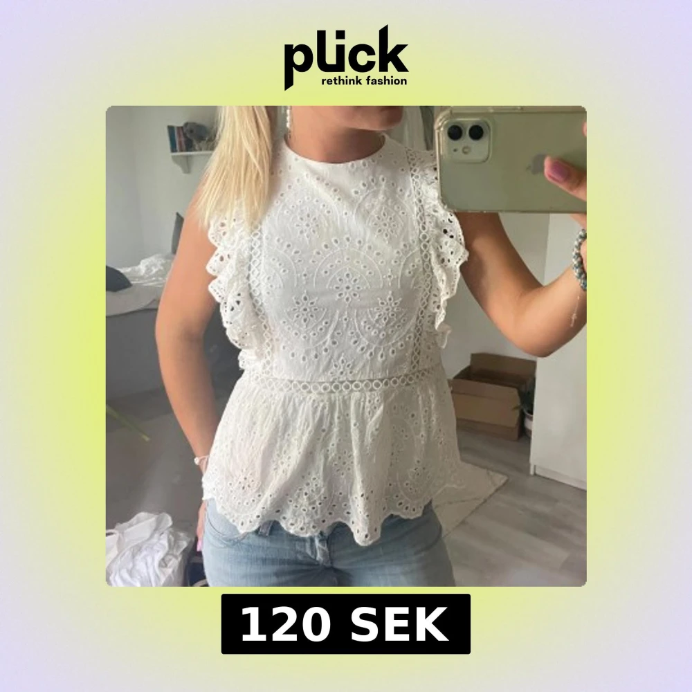 Superfin vit blus från Etik med broderade detaljer och volang vid axlarna. Toppen har rund hals, är ärmlös och har ett lätt utsvängt avslut. Perfekt för sommarens alla tillfällen och ger en romantisk vibe till din outfit.