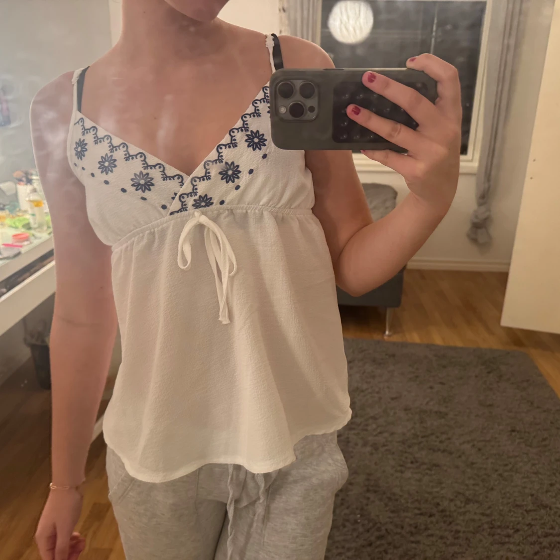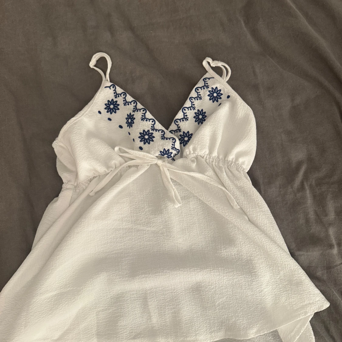 Supersöt vit linnetopp som har ett väldigt tunt och luftigt tyg som passar perfekt till varma dagar till bas linne under koftor för nu till hösten 😍 använd ca 5, tveka inte att fråga vid mer funderingar 🥰