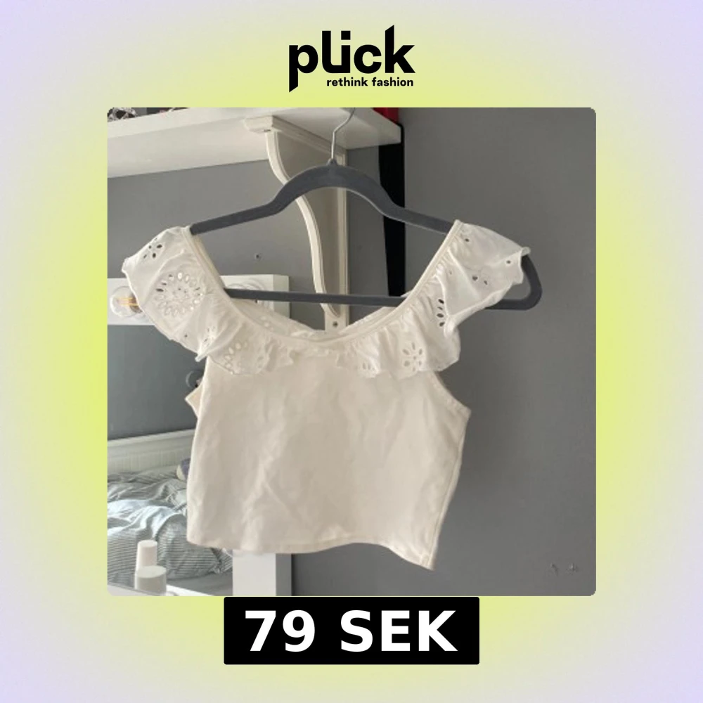 Säljer en söt vit topp från H&M med broderade detaljer och volangärmar. Toppen är croppad och har fina spetsmönster. Perfekt för varma sommardagar! 💘 jag har aldrig använt ❤️