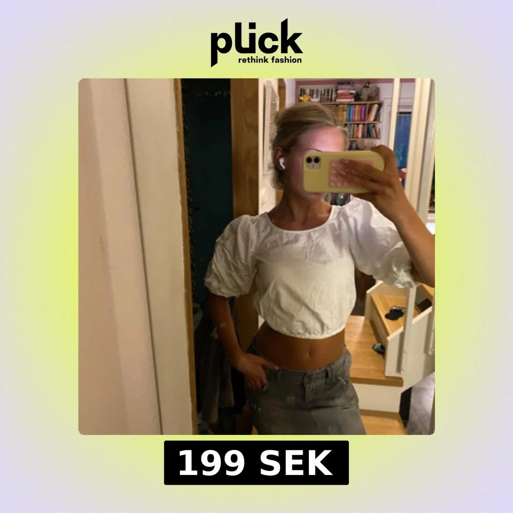 Säljer en vit croppad blus med bred resår i midjan och stora puffärmar. Skitsnygg, passar till mycket men bland annat lite baggy lågmidjade jeans!🌊💕Tror att den var från hm.