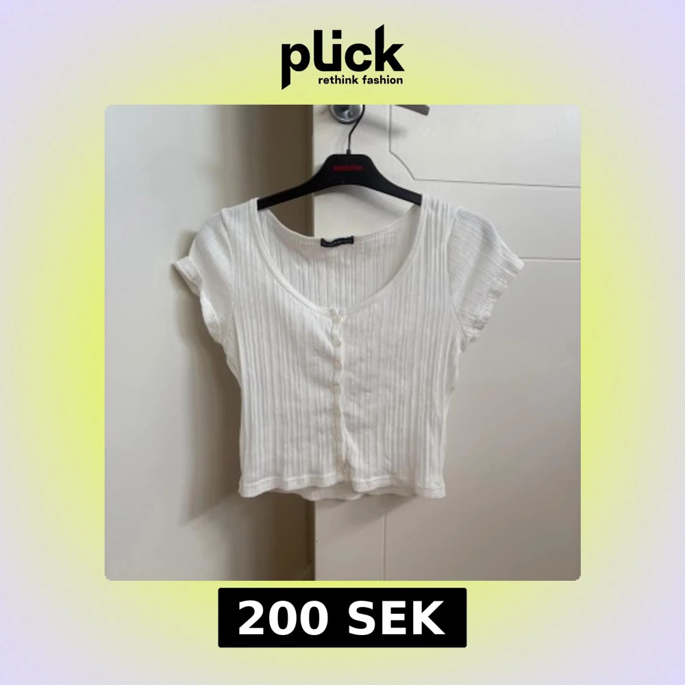 Supersöt vit croppad topp från Brandy Melville med ribbad struktur och korta ärmar. Rundad halsringning och knappar framtill ger en chill vibe
