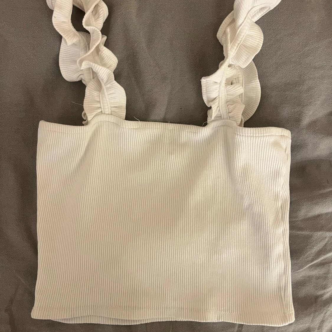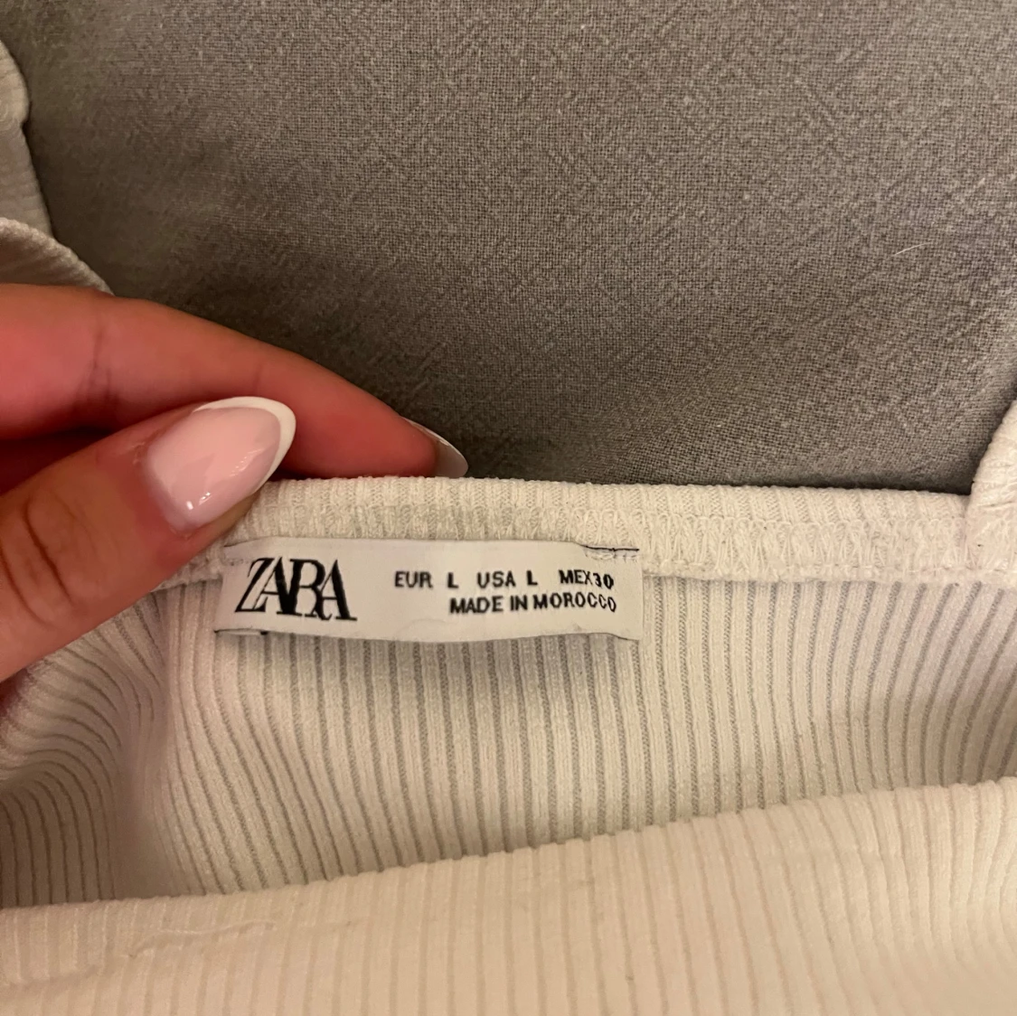 Jättesöt topp från Zara som är croppad. Står att den är i storleken L men skulle snarare säga XS/S men det är beroende på hur croppad man vill ha den!