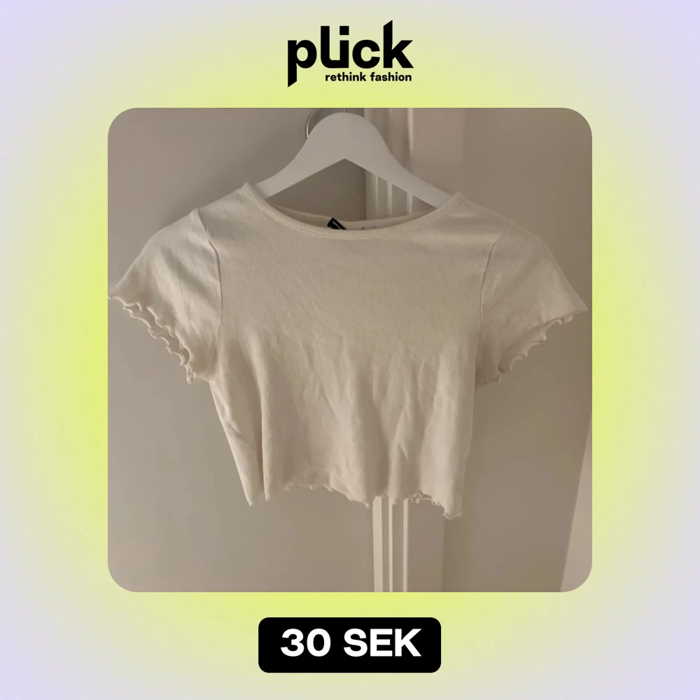 Säljer en söt vit croppad topp med korta ärmar och ribbad struktur. Toppen har en enkel och stilren design som passar till det mesta. Den är i bra skick.