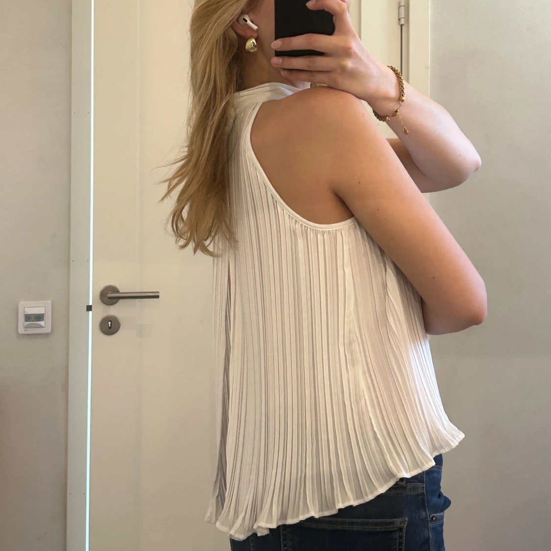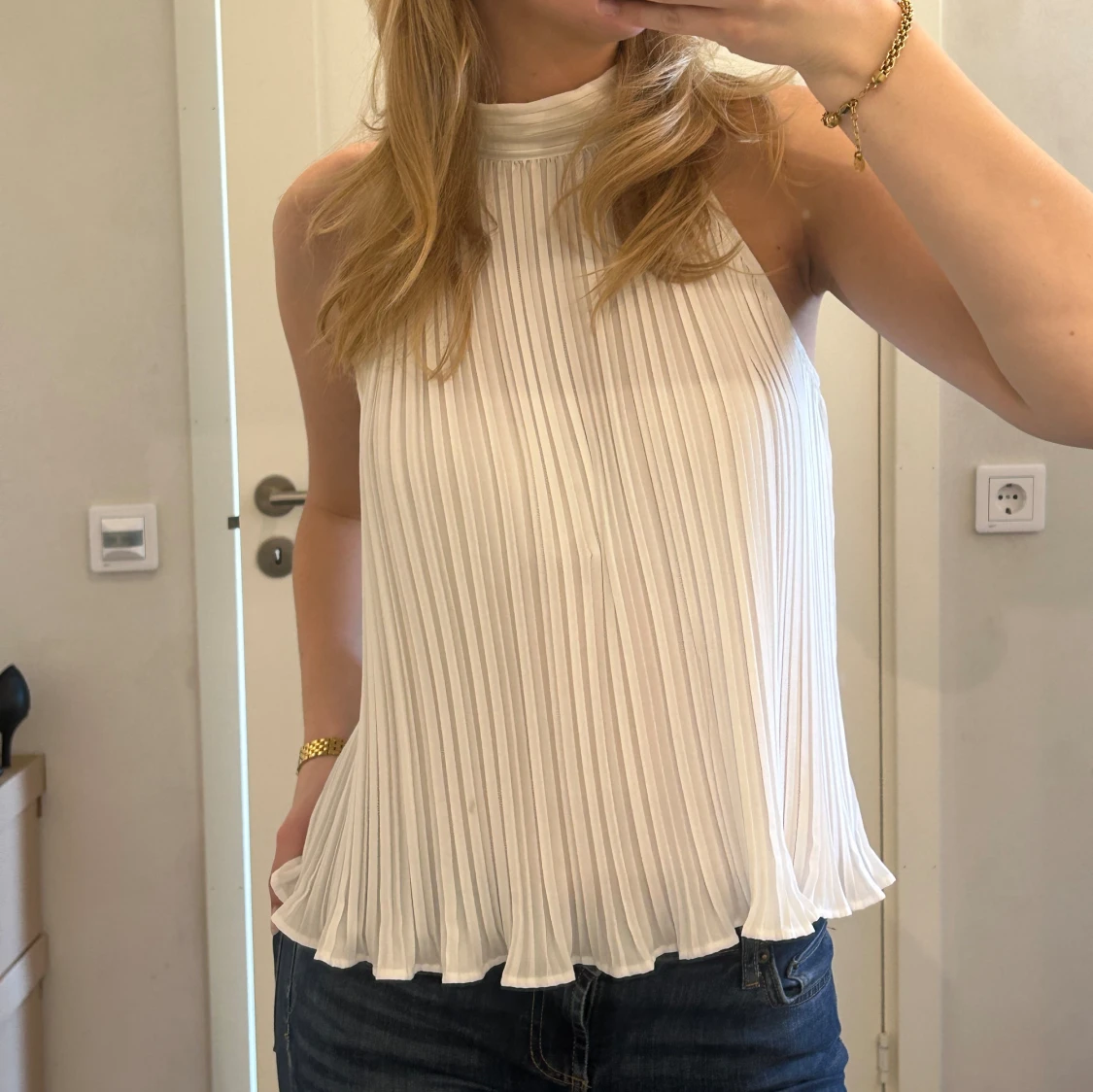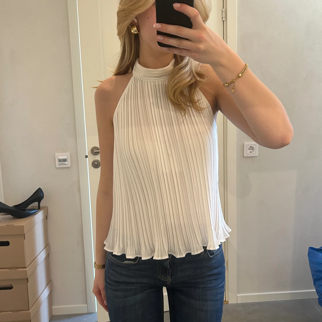 Jättesnygg vit festtopp från zara med öppen rygg. Storleken är M men sitter mer som en S. Knappt använd och har inga defekter💕💗