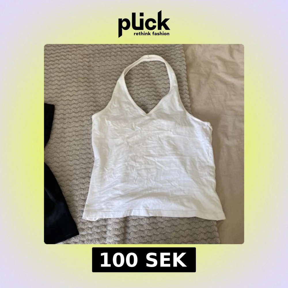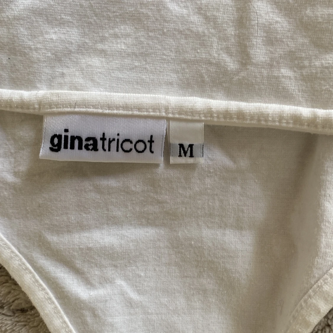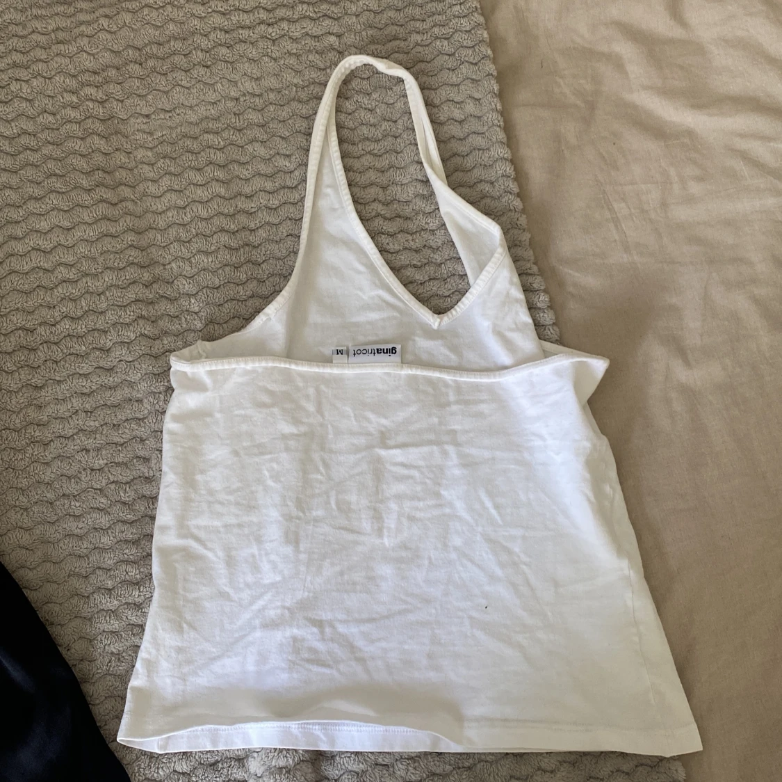 Säljer en stilren vit linnetopp från Gina Tricot i storlek M. Den är knuten runt nacken.