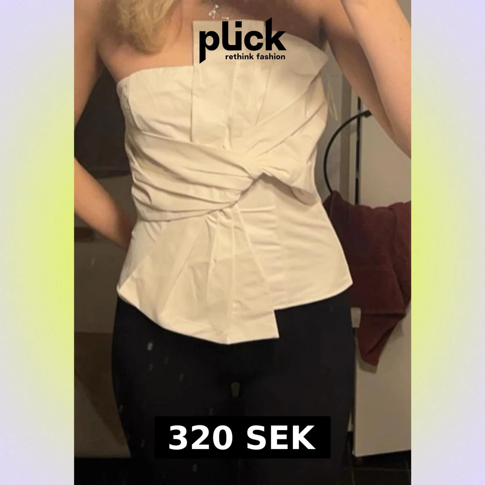 Vit tubtopp från hm med ett knyte framtill. Använd 1 gång och har tvär inte kommit till användning sedan dess😪