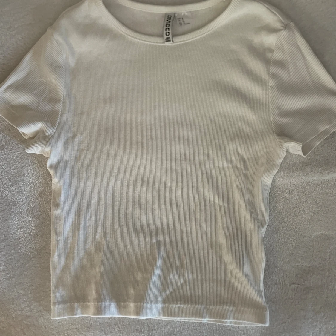 SĂ€ljer en vit croppad topp frĂ„n H&M pĂ„ Divided i ribbad bomull. Modellen har rund hals, korta Ă€rmar och sitter tight mot kroppen. Perfekt basic att styla med jeans eller kjol. Enkel och frĂ€sch design som funkar till alltđ