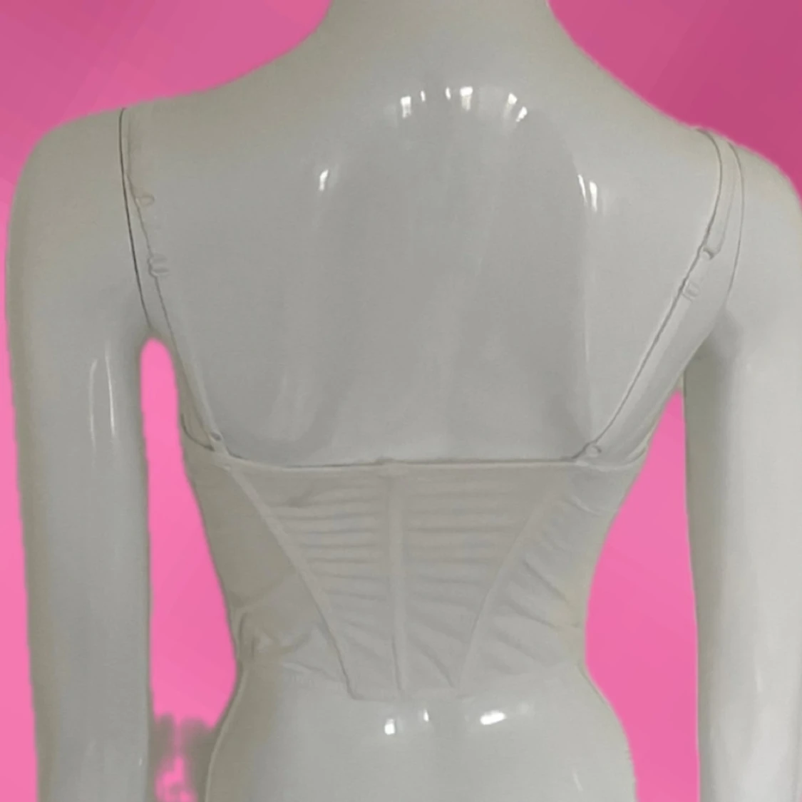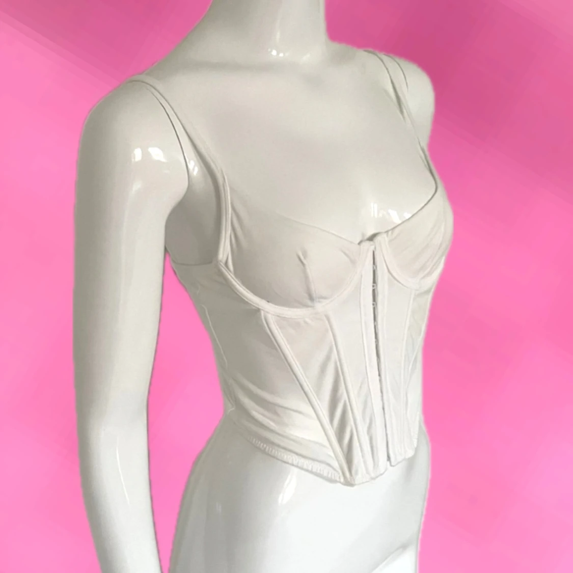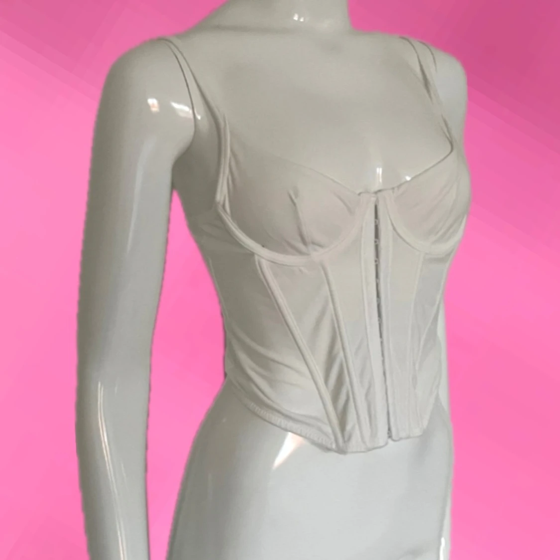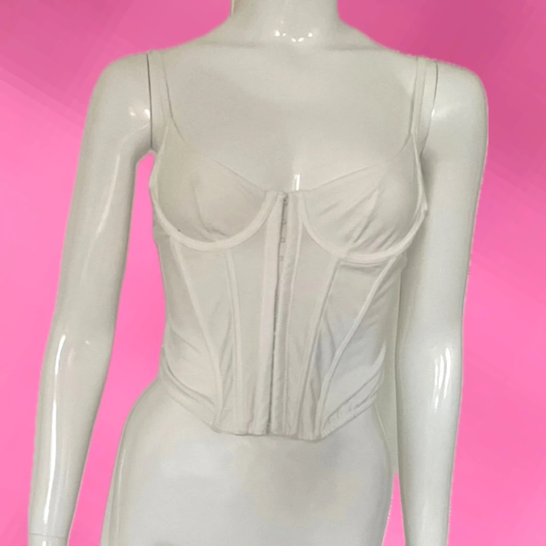 Vit korsett / bustier topp med smala axelband och hyskknäppning framtill. Endast använd en gång.