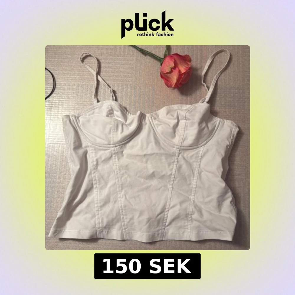Säljer en vit korsett-topp från Divided med justerbara smala axelband och markerade sömmar framtill. Toppen har bystformade kupor och croppad passform, perfekt för att lyfta din outfit. Gjord i mjuk bomullsmix som känns skön mot huden.