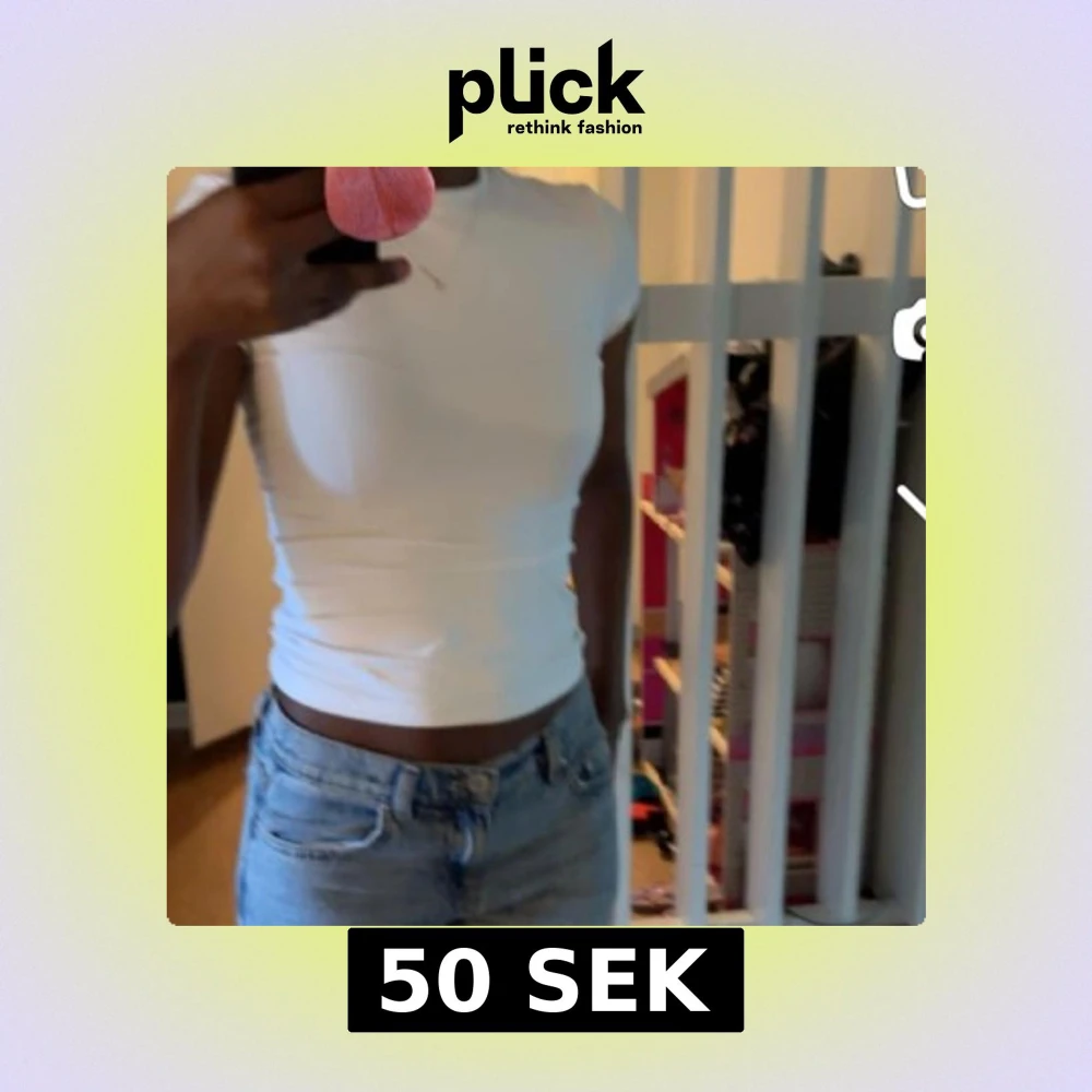 Säljer en stilren vit kortärmad topp. Den är tight och passar perfekt till jeans eller kjol. Enkel och mångsidig för olika tillfällen.