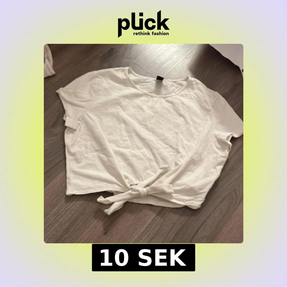 Säljer en vit kortärmad topp med knyt framtill. Perfekt för en avslappnad stil. Toppen har en rund halsringning och är gjord i ett mjukt material.