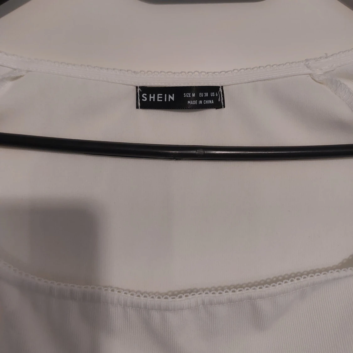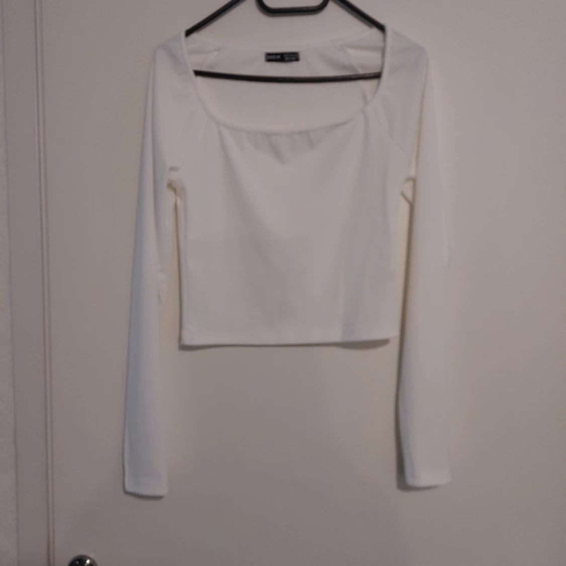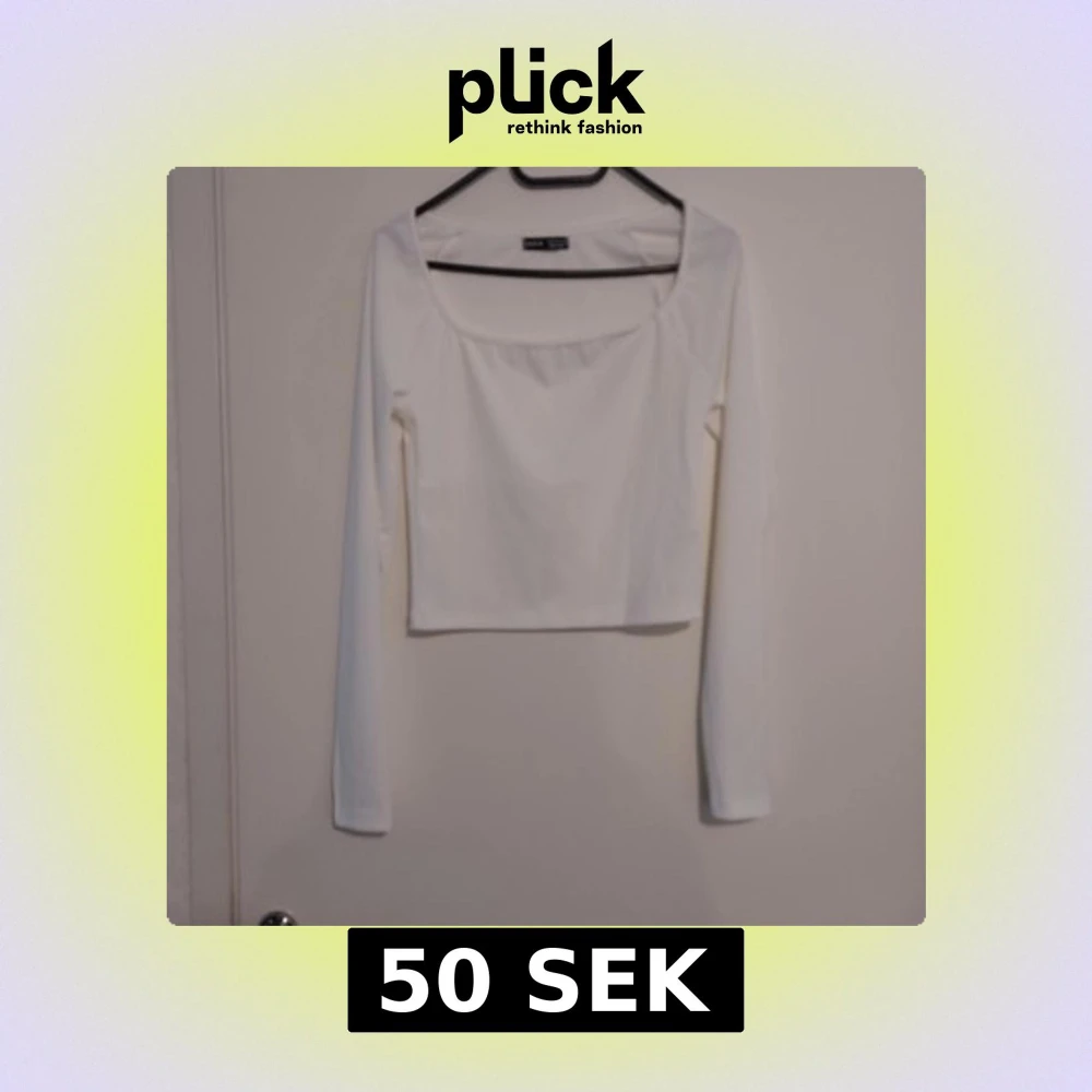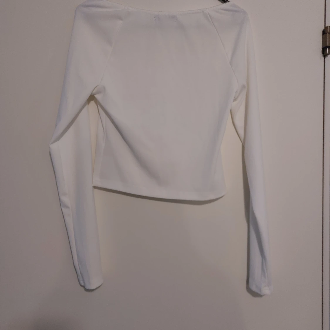 Säljer en stilren vit långärmad topp från SHEIN i storlek M. Toppen är croppad med fyrkantig ringning och har en clean look som passar till jeans eller kjol. Materialet är mjukt och stretchigt, perfekt för dig som gillar minimalistisk stil.Helt ny.
