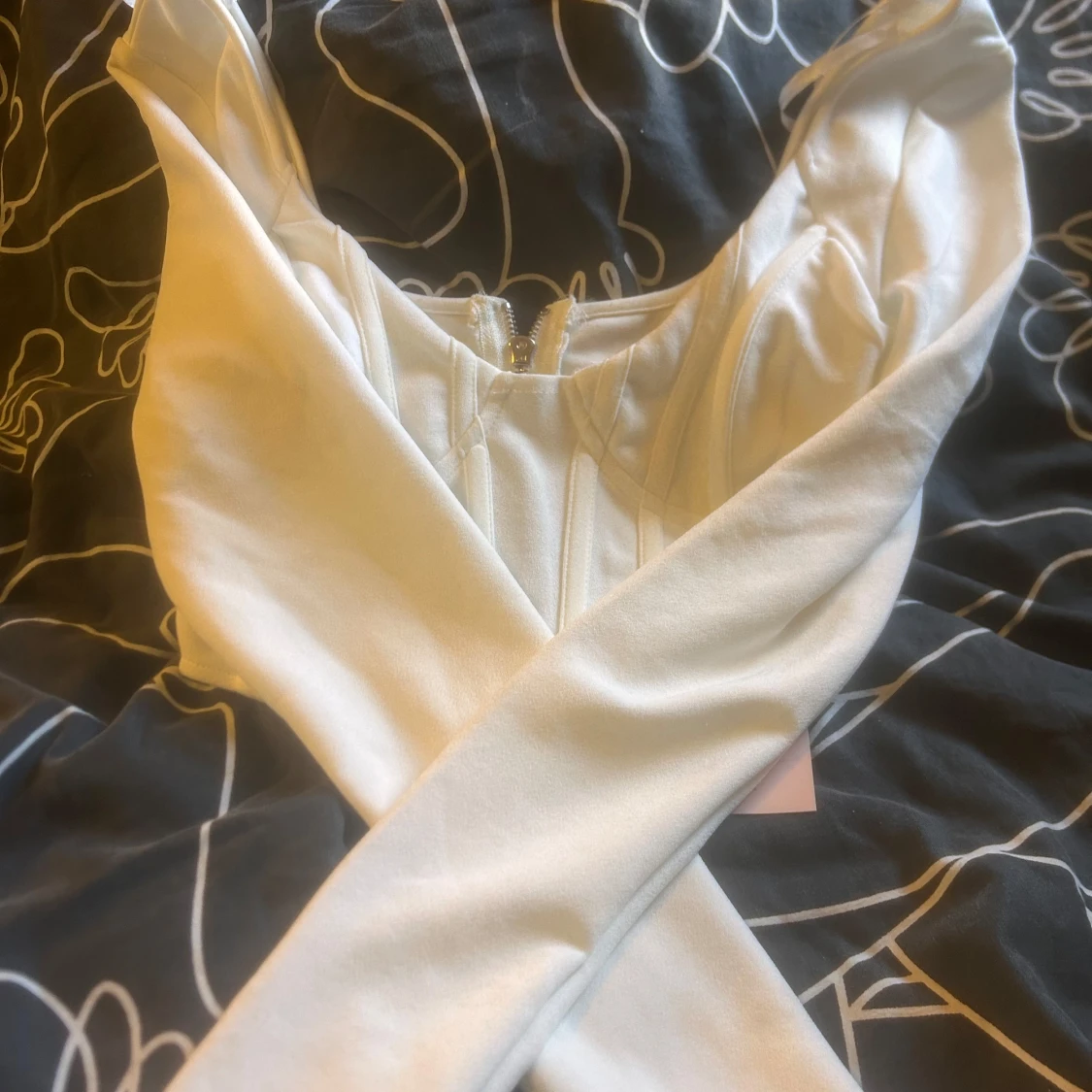 Supersnygg vit korsett-topp från Missguided med långa ärmar och markerade sömmar för en edgy look. Toppen har dragkedja bak och en figurnära passform som framhäver midjan. Perfekt för dig som vill sticka ut med en trendig och stilren vibe.