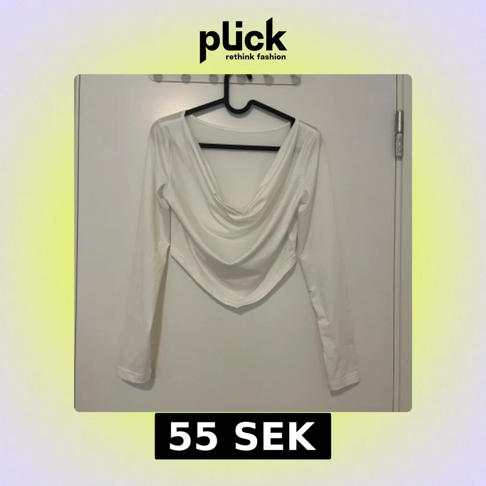 Snygg vit långärmad topp med draperad omlottringning och spetsig nederkant. Toppen har en stilren look och är tillverkad i ett mjukt, stretchigt material som sitter skönt på kroppen. Perfekt för dig som gillar trendiga och enkla plagg med en twist.