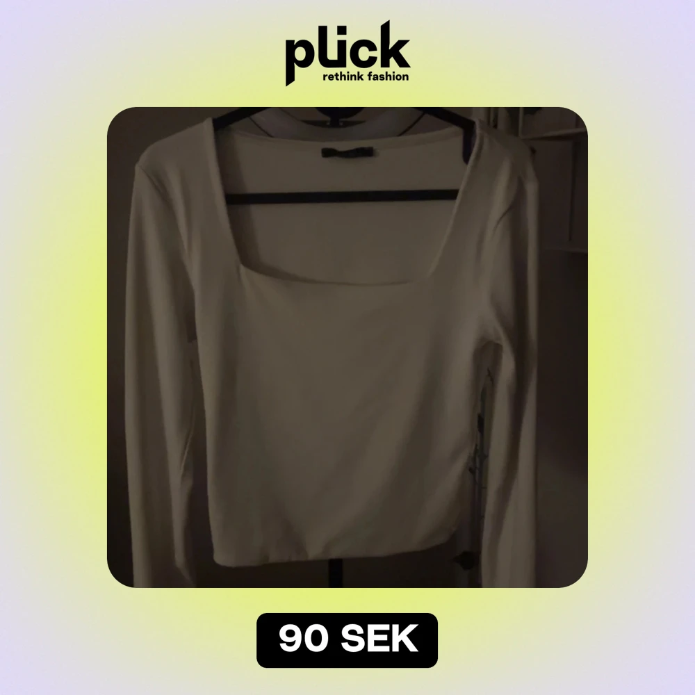 Säljer en stilren vit långärmad topp i mjukt material. Perfekt för både vardag och festliga tillfällen. Toppen har en enkel design med en fyrkantig halsringning som ger en modern touch.