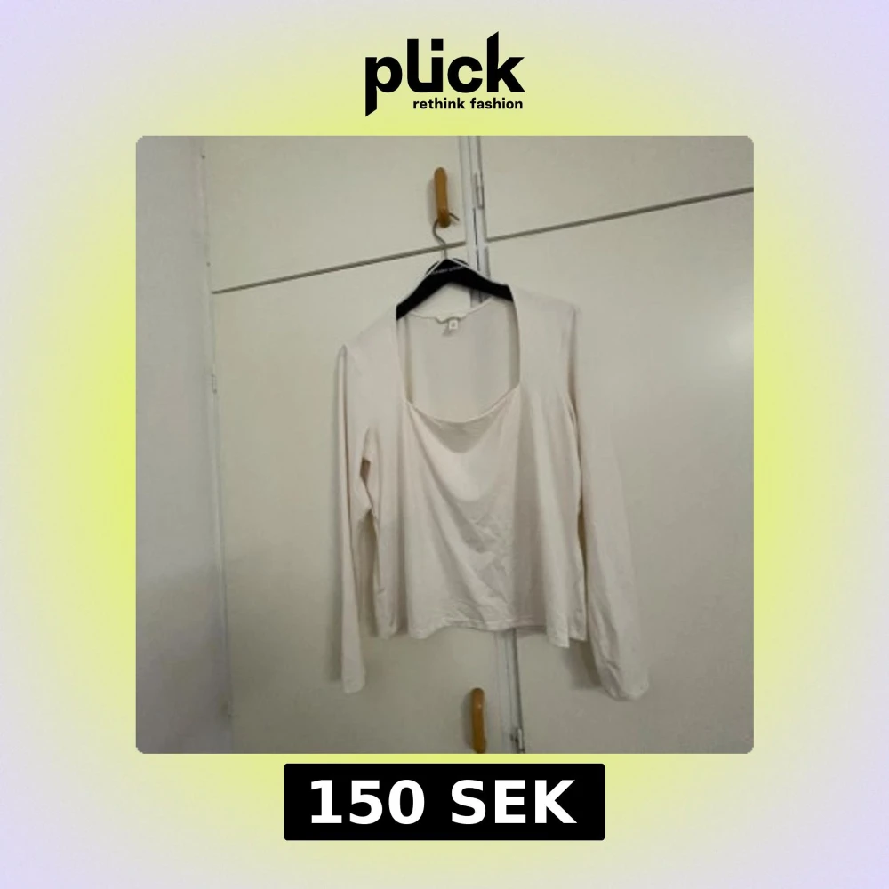 En stilren vit långärmad topp från H&M i storlek XL. Toppen har en fyrkantig, djup urringning och är tillverkad i mjuk bomull. Perfekt att styla med jeans eller kjol för en clean look.
