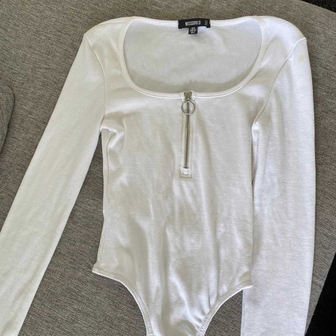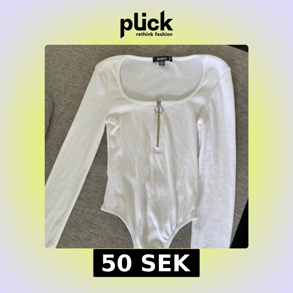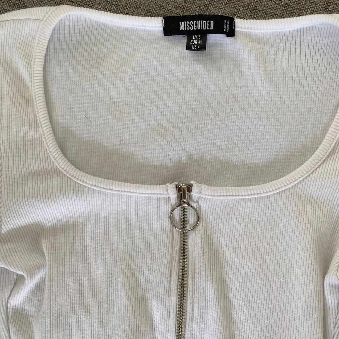 Vit ribbad långärmad topp från Missguided med rundad fyrkantig urringning och en snygg dragkedja framtill med ringdetalj. Tight passform och stretchigt material som sitter snyggt på kroppen. Perfekt att styla med jeans eller kjol.