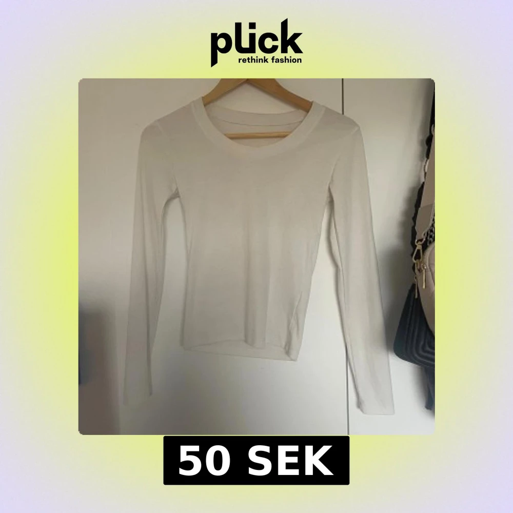 Säljer en enkel och stilren vit långärmad topp i mjuk bomull. Modellen har rund halsringning och en slim passform som sitter snyggt på kroppen. Perfekt att matcha med jeans eller kjol för en clean look.