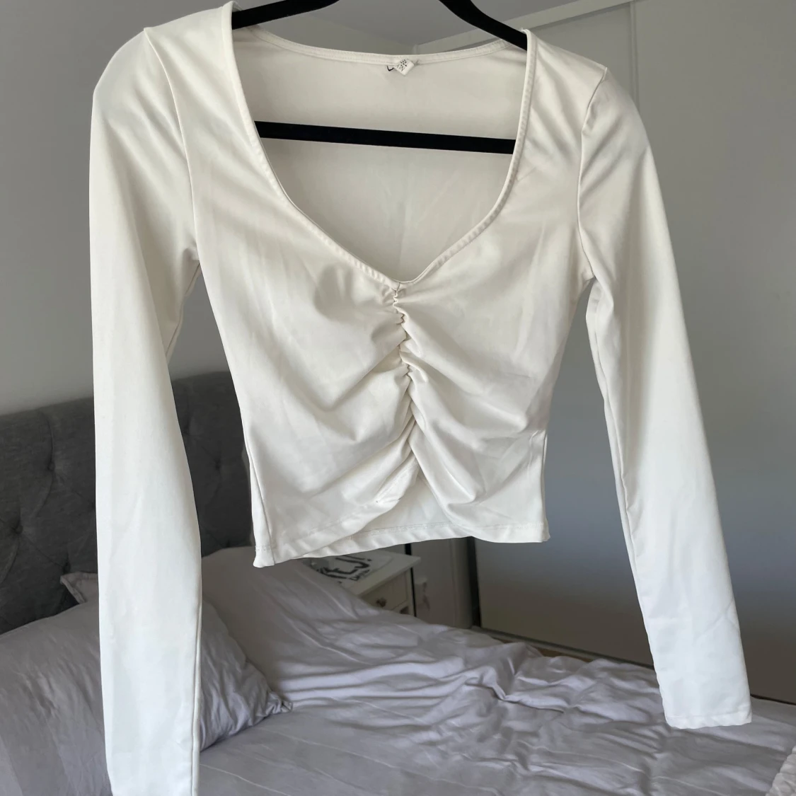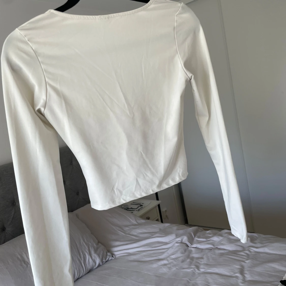 Säljer denna vita långärmade toppen från Nelly i storlek xs. Den är i mycket bra skick