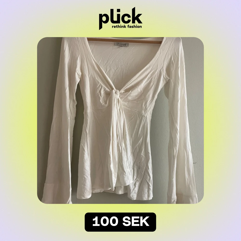Säljer en superfin vit långärmad topp från Design by Si. Den har en v-ringad design med knyt framtill. Storlek S