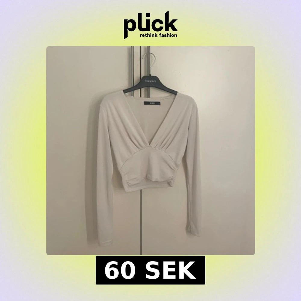 Säljer en stilren vit topp. Toppen har en djup v-ringning och är långärmad, vilket gör den perfekt för både vardag och fest. Den är tillverkad i ett mjukt och bekvämt material som sitter snyggt på kroppen.