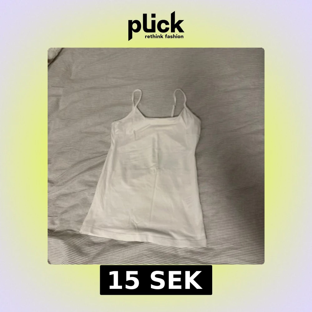 Säljer en enkel och stilren vit linnetopp med smala axelband. Perfekt för varma dagar eller som lager under andra plagg. Passar till många olika stilar och tillfällen.