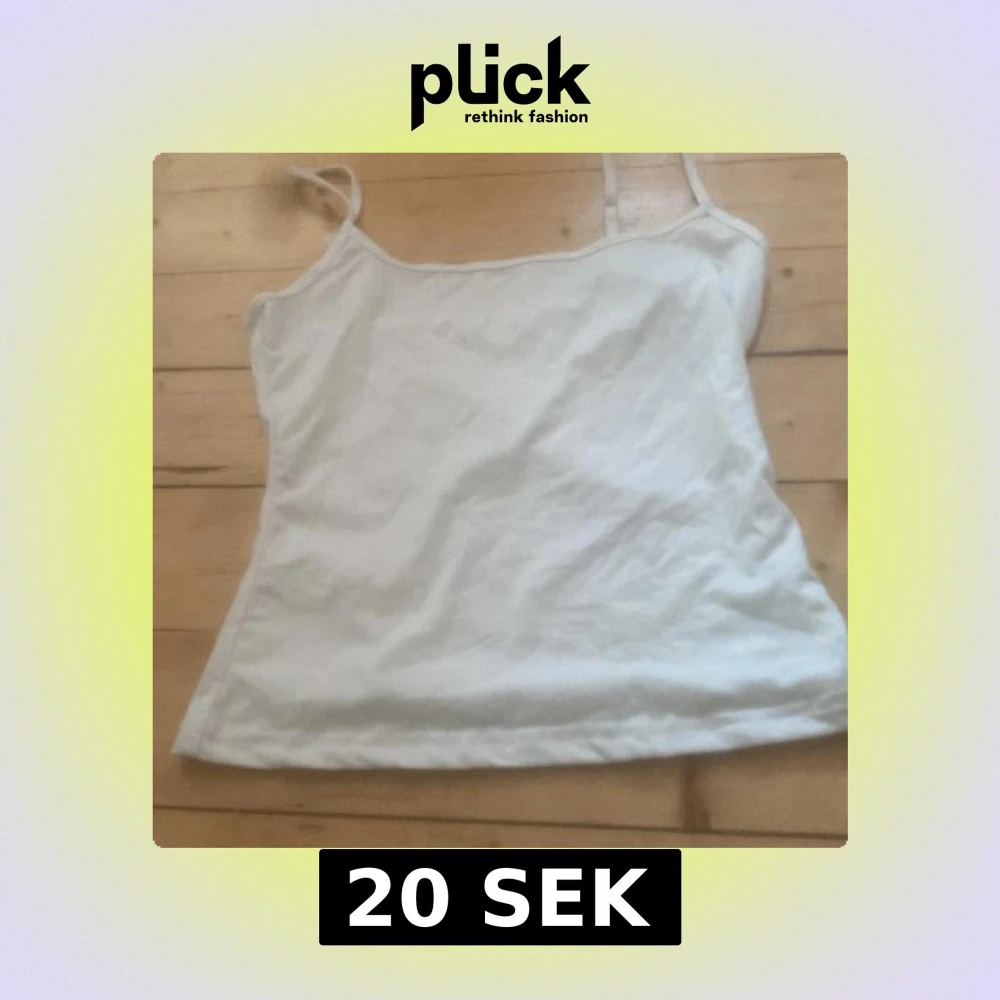 Säljer en enkel och stilren vit linnetopp med tunna axelband. Perfekt för varma sommardagar eller som ett basplagg i garderoben.