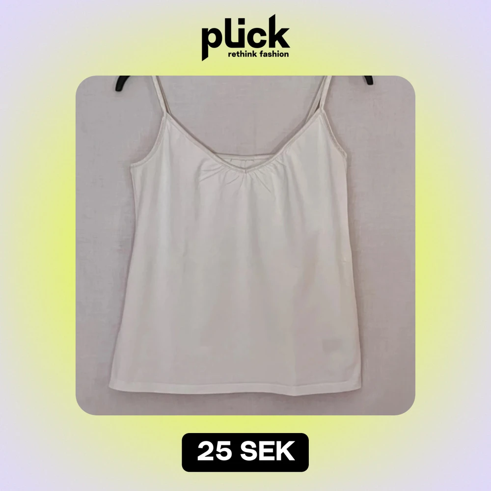 Säljer en enkel och stilren vit linnetopp i bomull och elastan. Perfekt för sommardagar eller som ett basplagg i garderoben. Den har smala axelband och en bekväm passform. Lite nopprig på insidan
