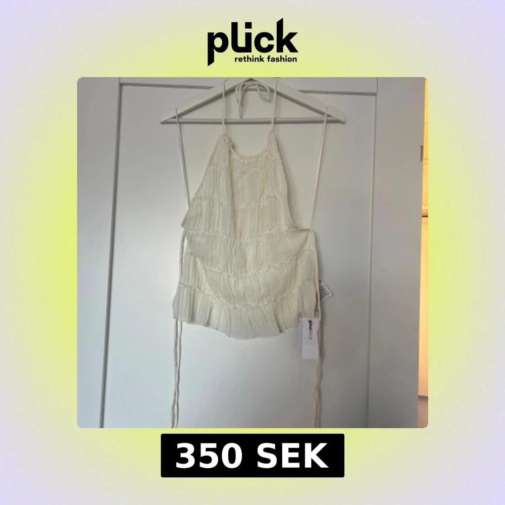 Supersöt vit linnetopp från Gina Tricot med tunna axelband och volangiga lager. Toppen har knytband i ryggen och en lätt, flowy känsla. Perfekt för varma dagar och ger en romantisk vibe till din outfit.
